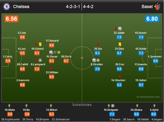 Trái với dự đoán của nhiều người trước trận đấu, HLV Mourinho tiếp tục loại Torres trong trận tiếp đón Basel ở trận ra quân vòng bảng Champions League. Trên hàng công, Samuel Eto’o được tin dùng từ đầu với sự hỗ trợ của Oscar, Lampard ngay phía sau và hai bên cánh do Hazard (trái) và Willian (phải) đảm nhận.