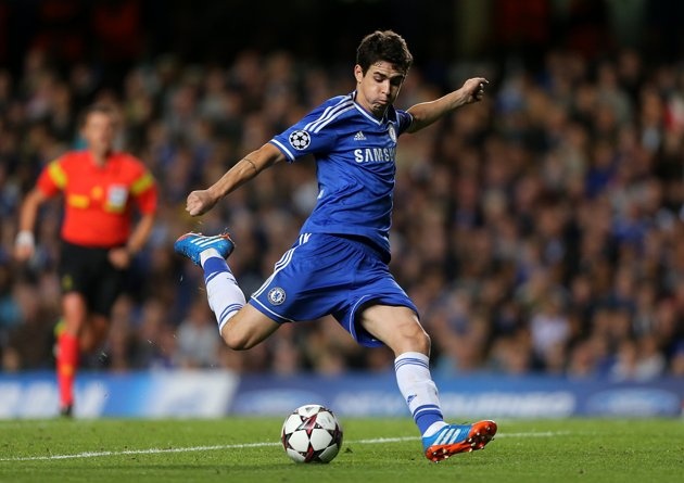 | Oscar ghi bàn mở tỷ số cho Chelsea ở phút 45. |