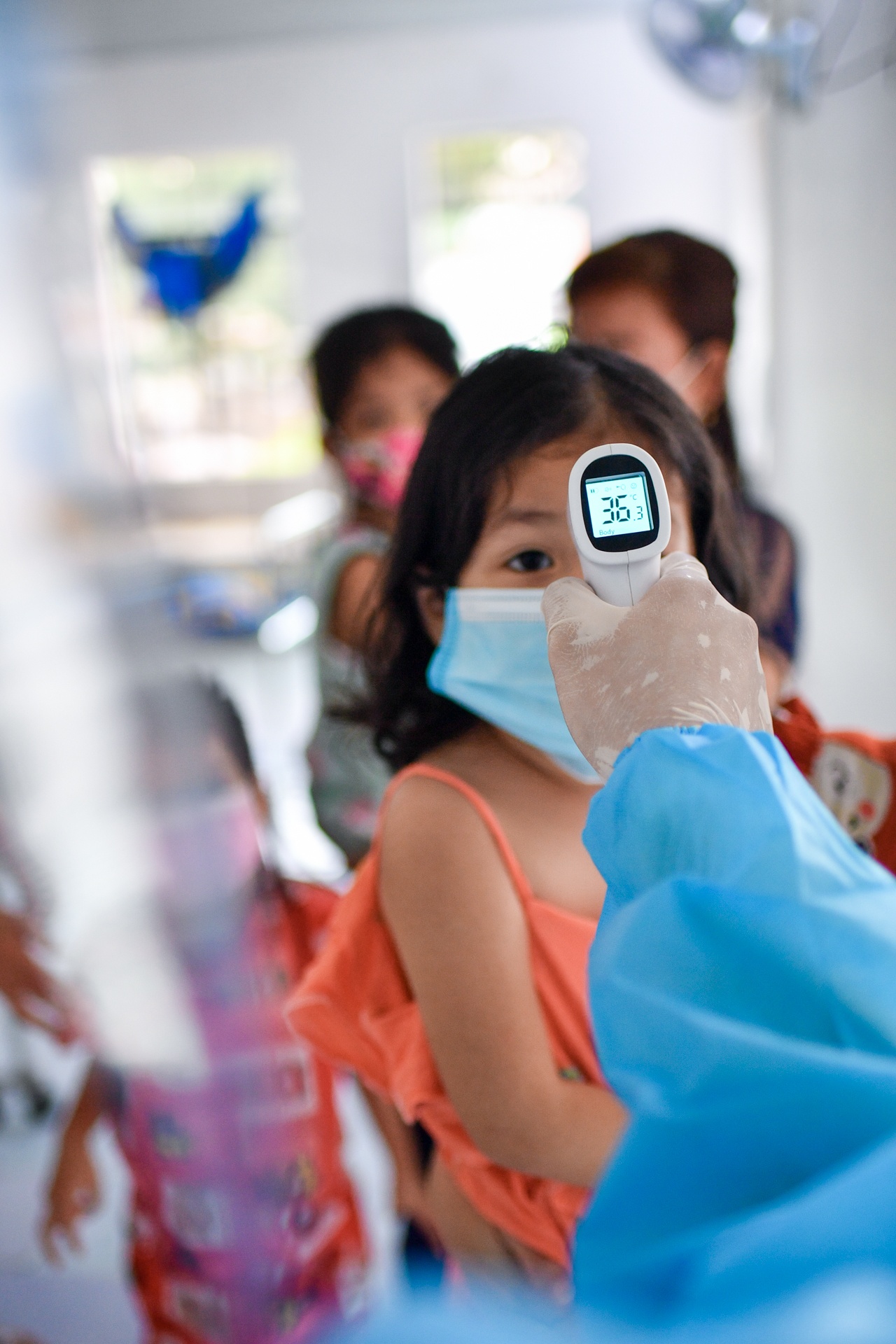 | Đây là phòng cách ly khiến tôi xúc động khi lần đầu tiên đo nhiệt độ. Họ vô tình trở thành F1 của bệnh nhân dương tính, thế là 3 người mẹ cùng 3 đứa trẻ vào cùng một phòng cách ly. Do các trường hợp này chưa đủ thời gian cách ly nên phải ở đến sau Tết Nguyên đán. Tôi động viên họ cố gắng vượt qua nỗi buồn. |