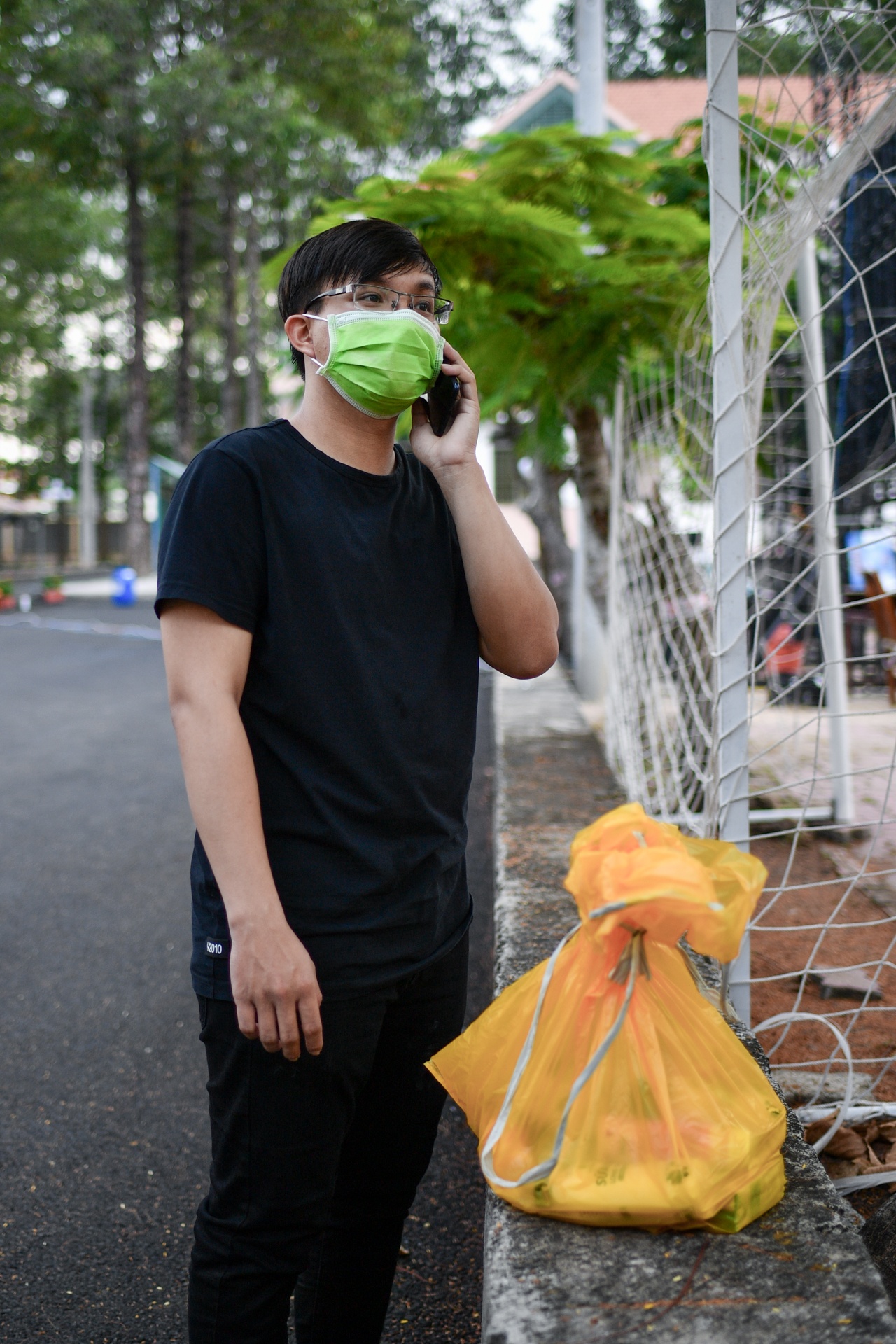 | Ngày tết, gia đình gửi đồ cho người trong khu cách ly khá nhiều. Hôm nay, tôi thay các anh ra cổng nhận đồ, tôi gọi cho người cách ly và đặt đồ trước sân để họ tự đến nhận. |
