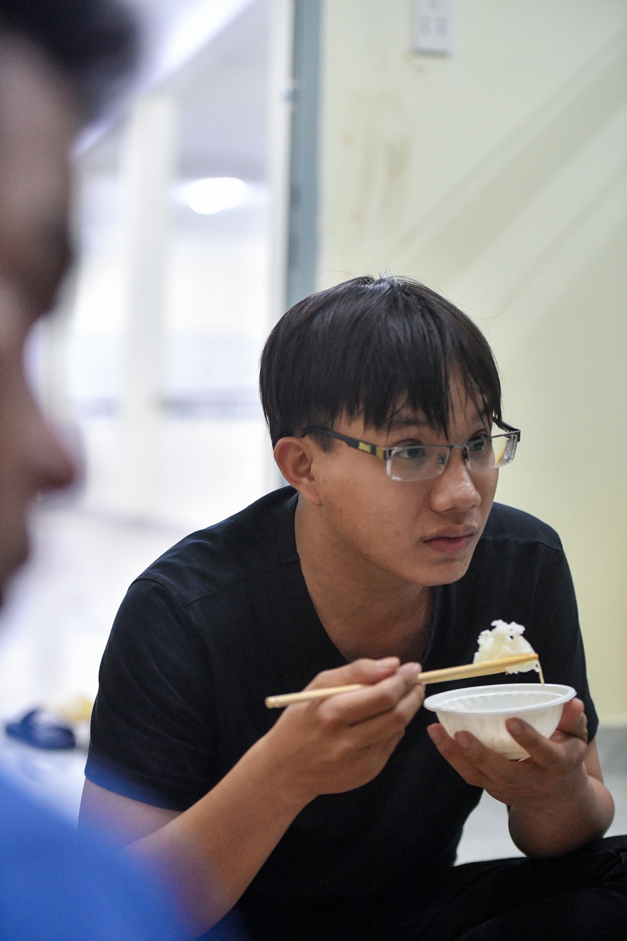 | Bữa cơm tối trong ngày 30 Tết của chúng tôi cũng không có gì đặc biệt, vẫn là những phần cơm hàng ngày được đơn vị cung cấp. Chúng tôi thường dành thời gian trong bữa cơm để kể cho nhau nghe về những tình huống, hoàn cảnh đặc biệt để hiểu rõ hơn về những người trong khu cách ly. |