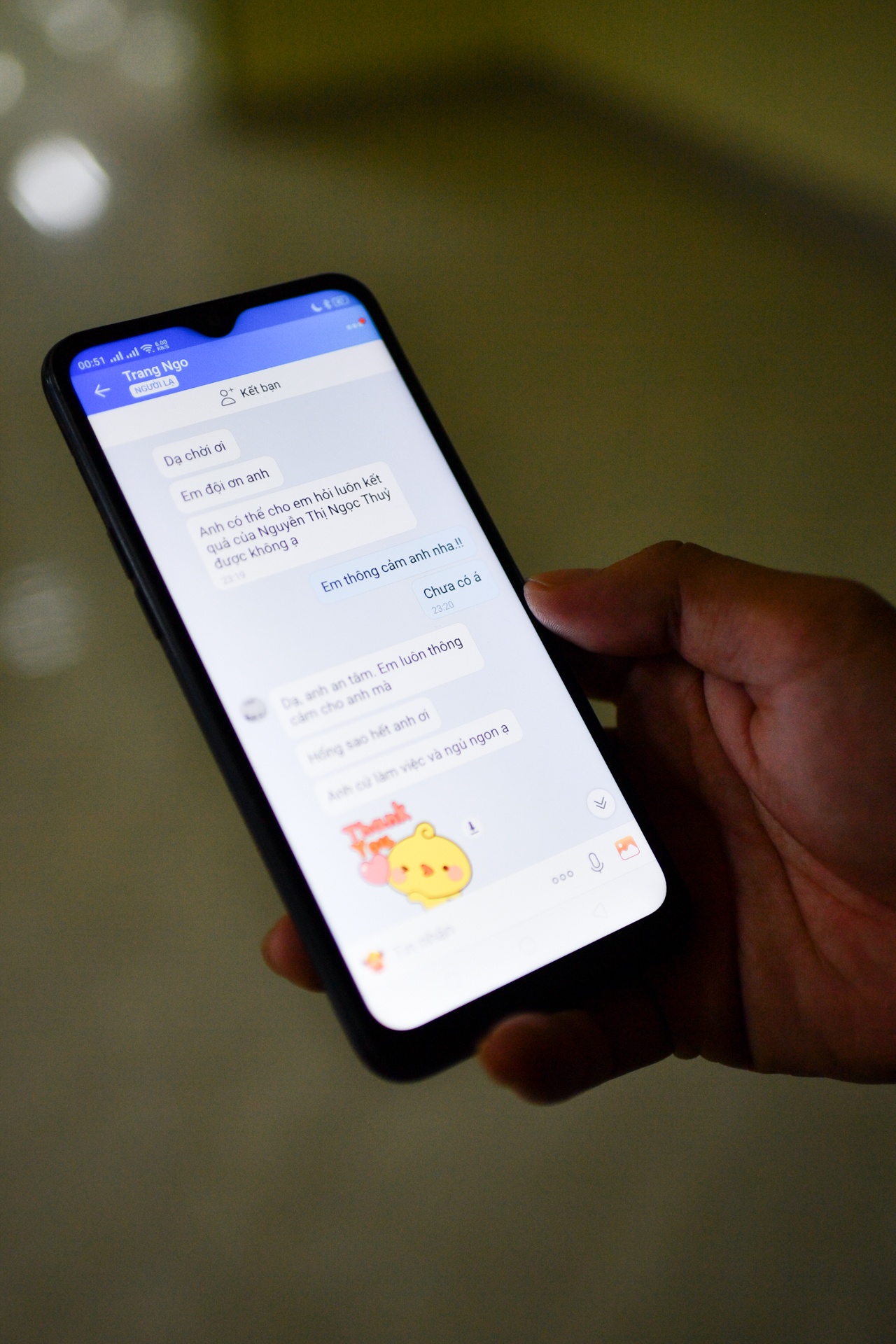 | Đây là chiếc điện thoại có số hotline của đội ngũ y tế phụ trách khu cách ly. Có nhiều người nhắn tin đến hỏi kết quả xét nghiệm, hoặc yêu cầu hỗ trợ những tình huống khó khăn. Vì vậy, chúng tôi phải chia ca, thay nhau cầm chiếc điện thoại "đặc biệt" này. |