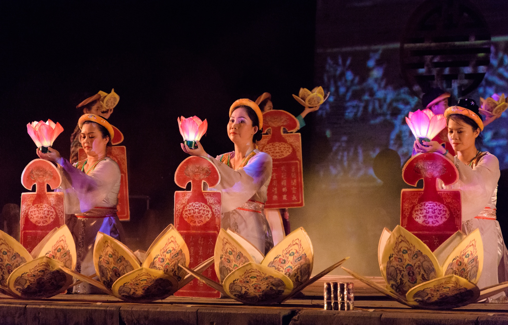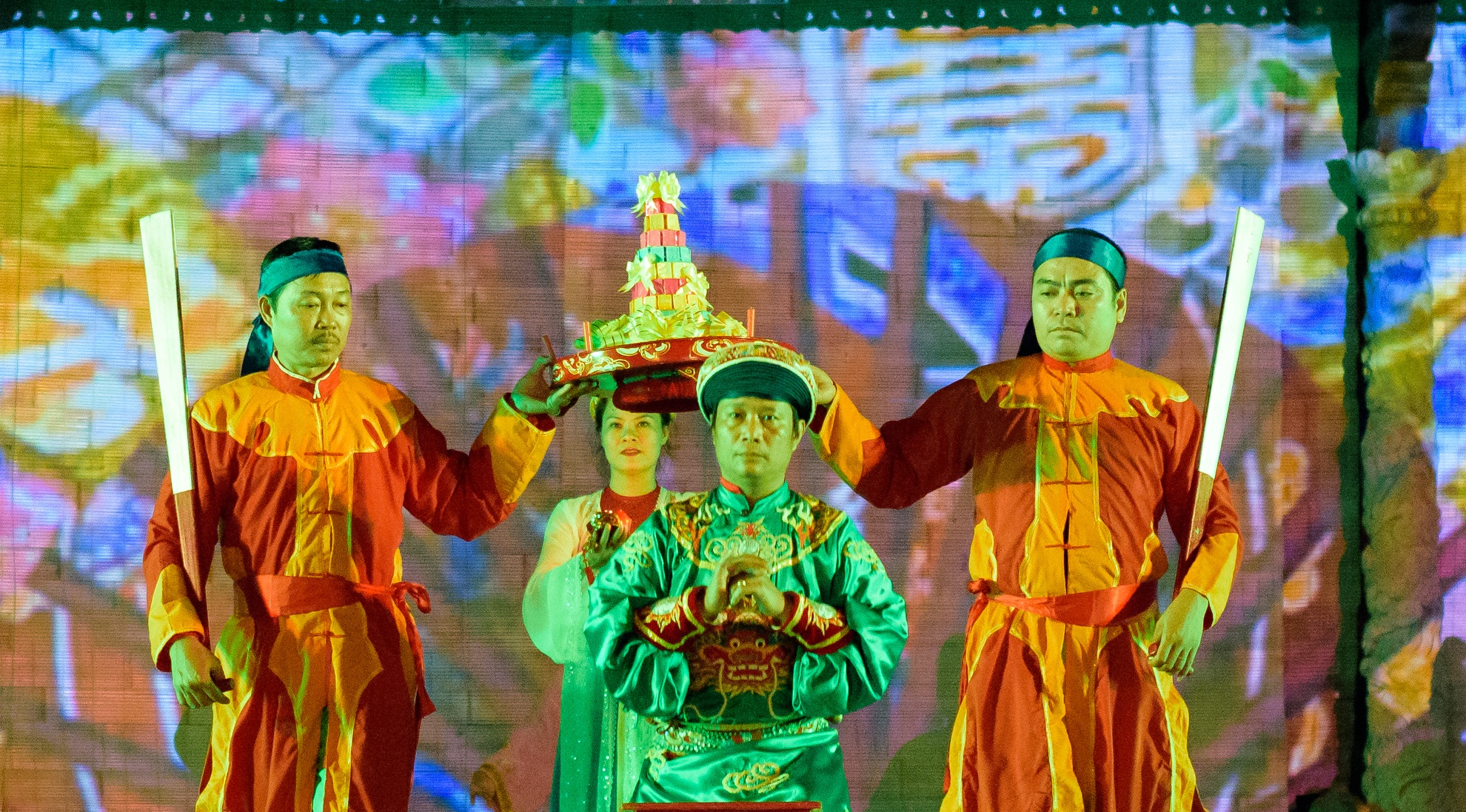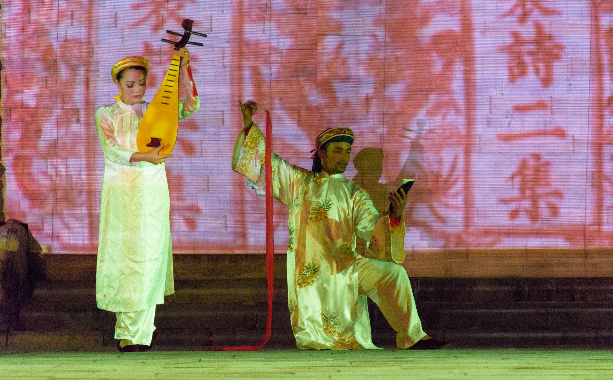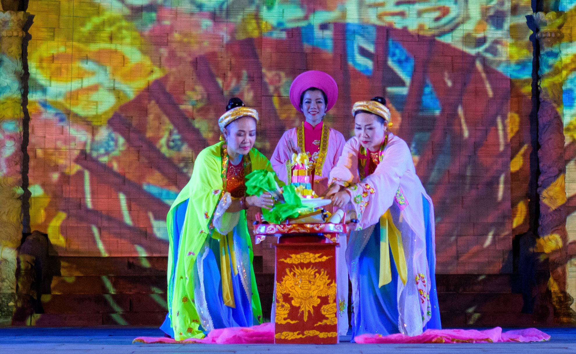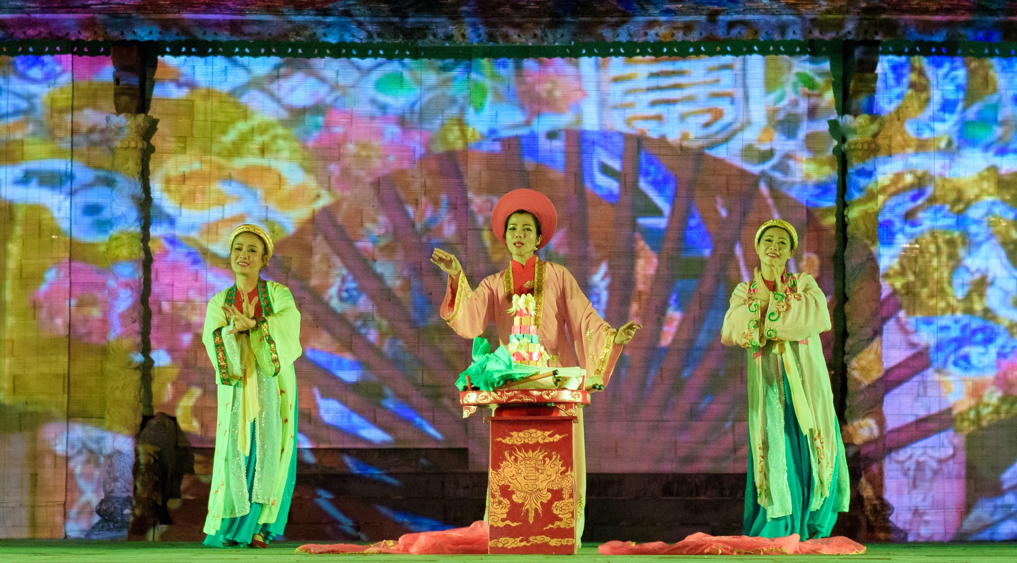 Người xem như ngược về quá khứ để hòa mình vào những sinh hoạt cung đình xa xưa với những sắc màu lung linh, huyền ảo. |