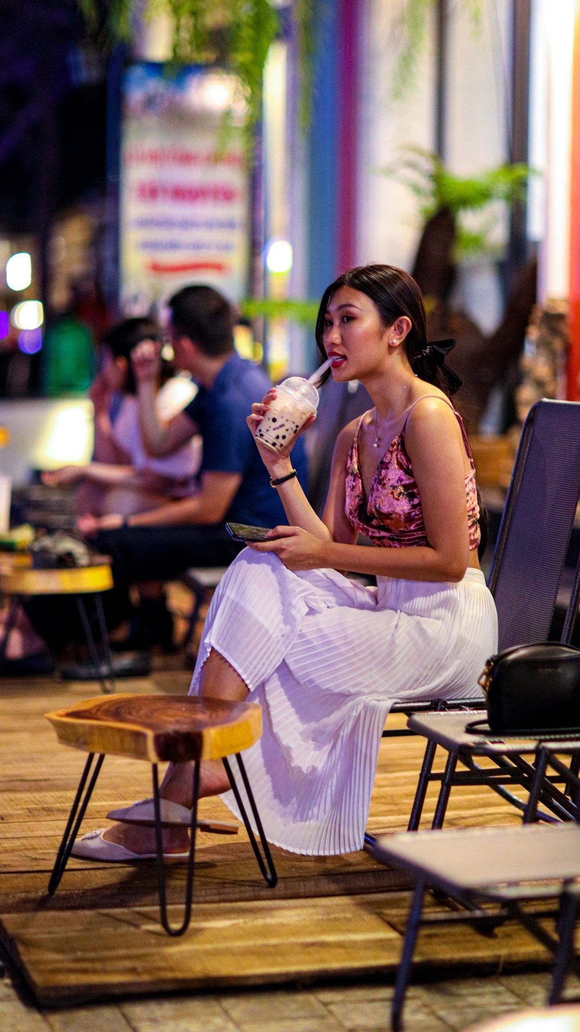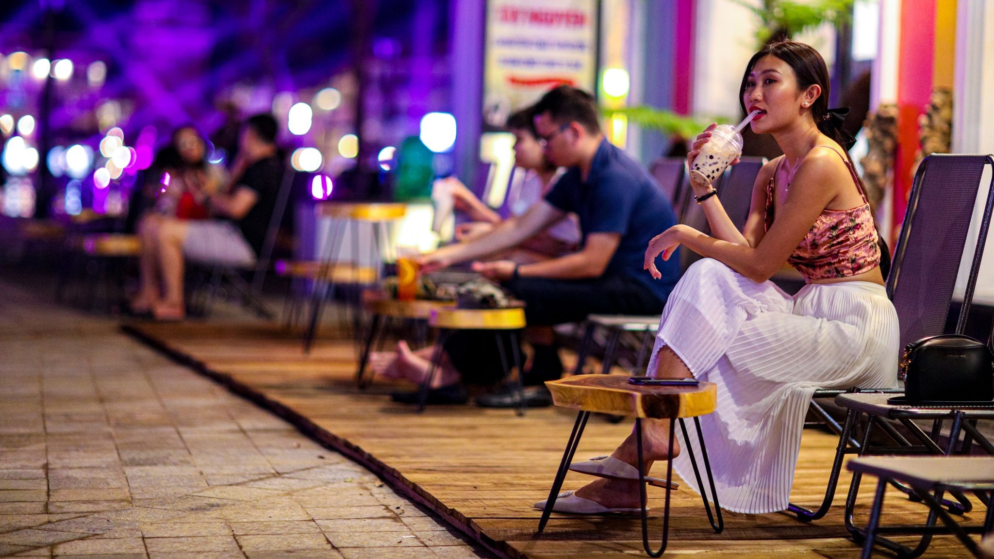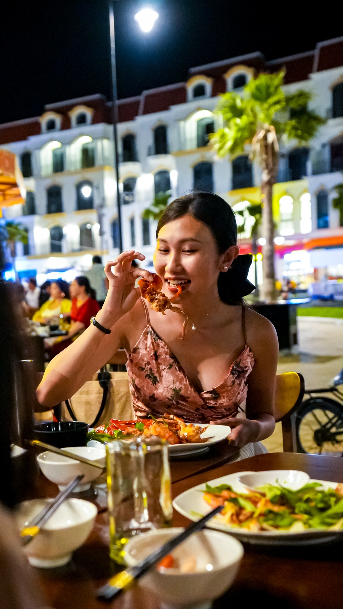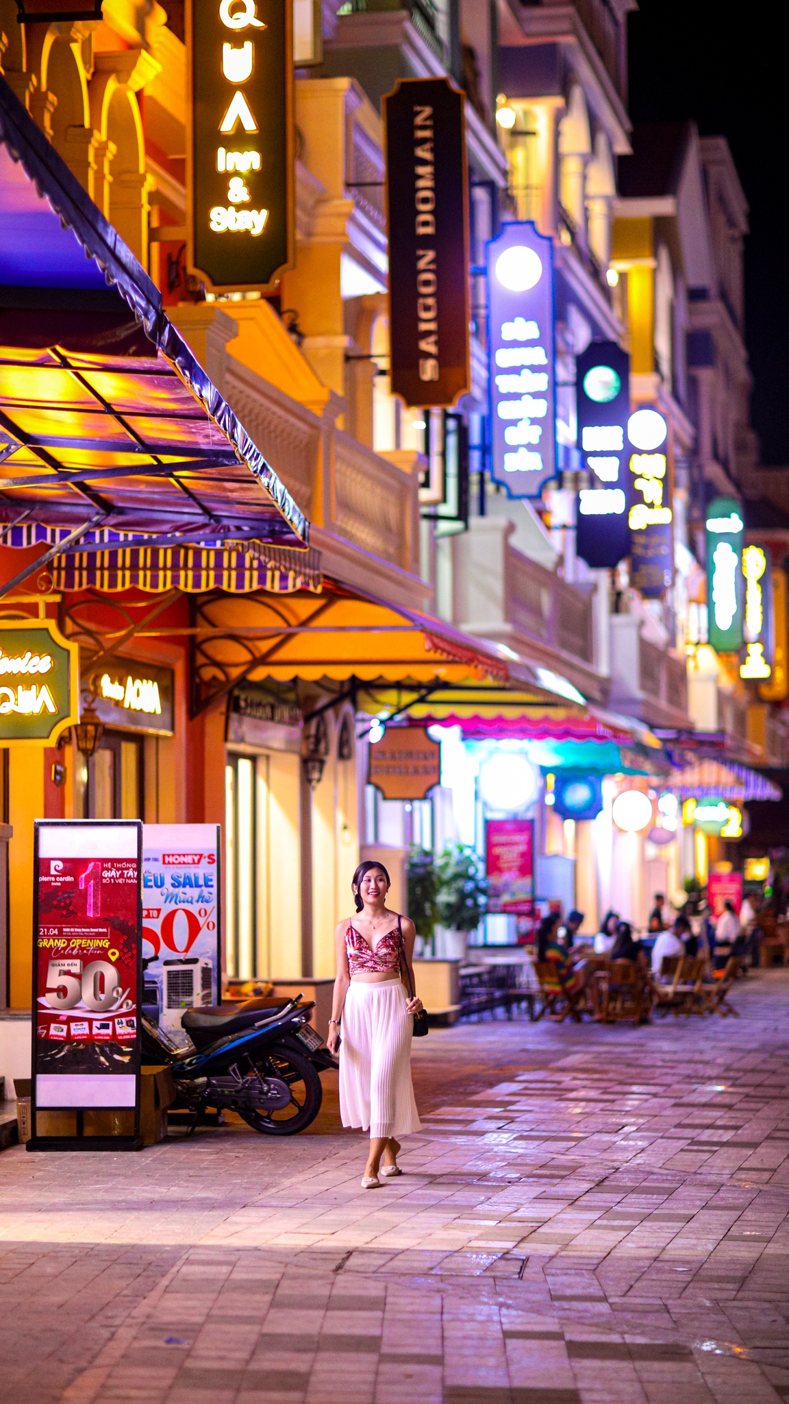 | Huyền thoại tre nằm ở đoạn đầu kênh đào Venice. Tôi tản bộ dọc theo con kênh thơ mộng để thu trọn vẻ đẹp của Phú Quốc về đêm. Hai bên là dãy shophouse nhiều màu sắc. Tôi cảm giác như mình đang thật sự rảo bước giữa những con phố nổi tiếng của Italy. |
