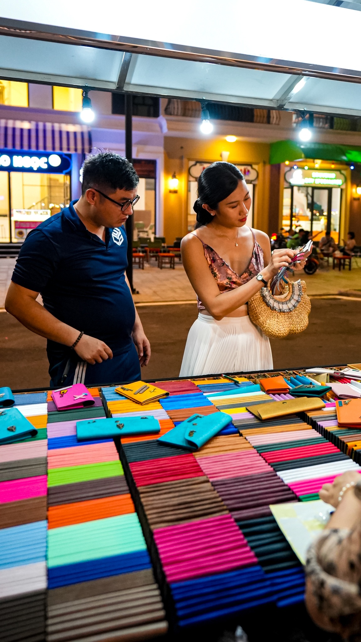 | Ngoài hàng quán ẩm thực, ở đây cũng có nhiều cửa hàng bán đặc sản Phú Quốc, đồ lưu niệm… Tôi chọn mua khô mực để làm quà cho gia đình, đồng thời mua thêm một chiếc bao mới cho passport. Tất cả đều có giá phù hợp với hầu bao của tôi. |
