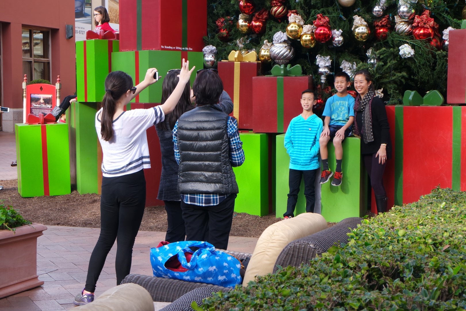 | Cây thông Noel cao 27 m được dựng lên ở khu mua sắm tại Fashion Island, thành phố Newport Beach, bang California. Trẻ em gốc Việt và các khách du lịch Á Đông rất thích chụp ảnh với các gói quà mô hình được đặt dưới chân cây thông khổng lồ. |