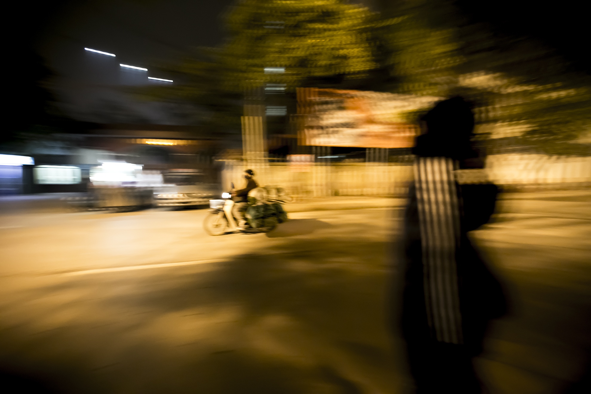 Làm việc ngoài trời về đêm mùa này ở Hà Nội rất lạnh. Vật dụng chống rét được ưa chuộng nhất ở đây là quần áo mưa giấy. |