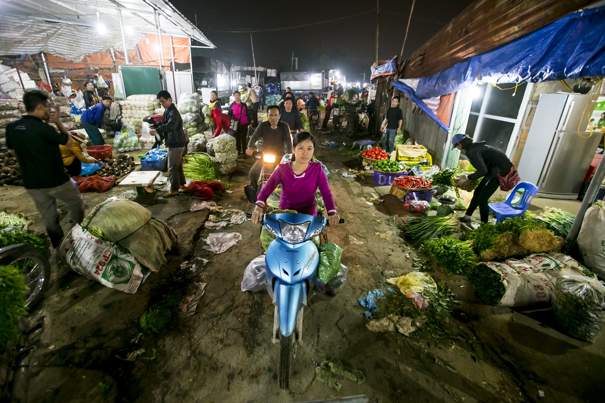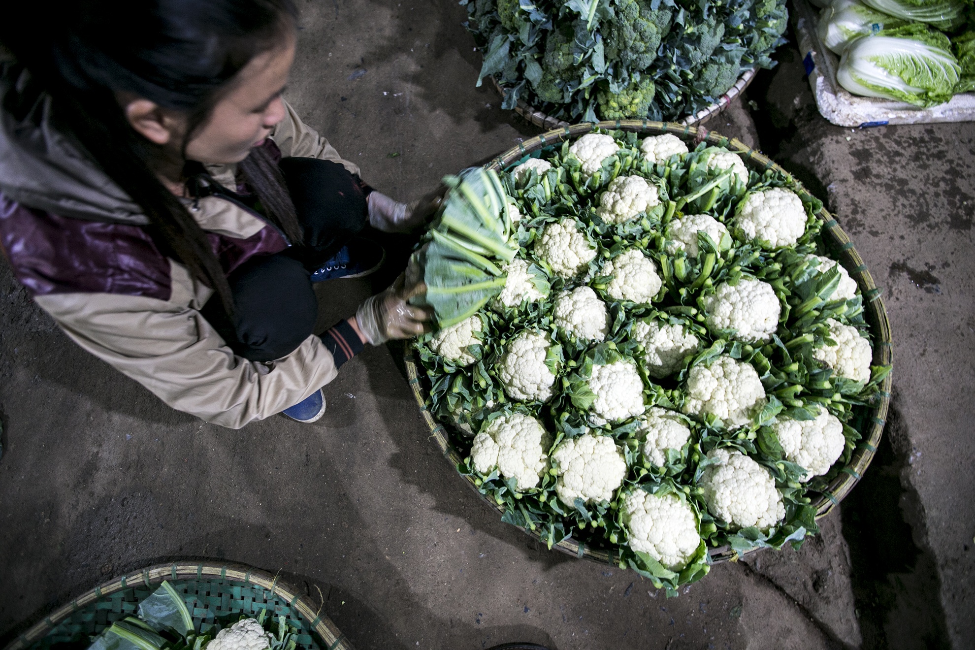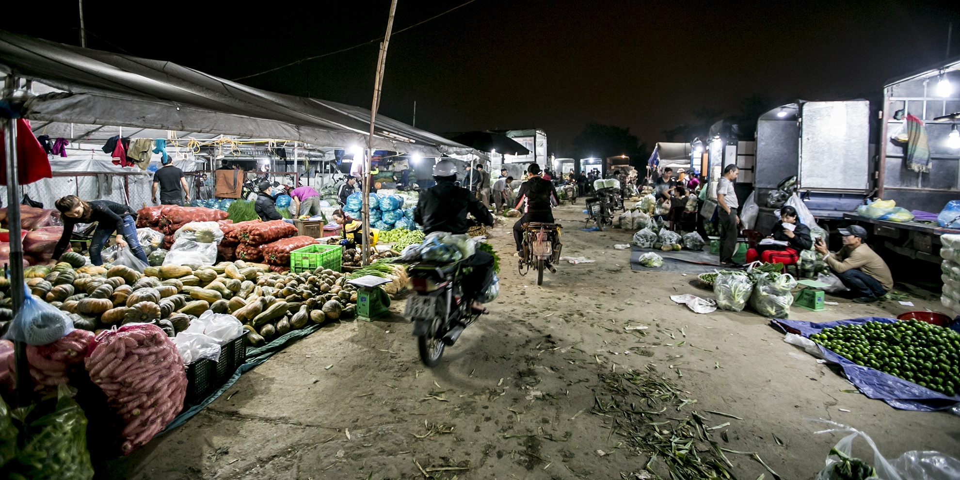 Chợ đầu mối Văn Quán (Hà Đông) ở phía Tây Nam thủ đô hoạt động từ 23h đến 6h sáng hôm sau. Vào nửa đêm, rau củ nườm nượp được chở tới đây bằng các phương tiện ôtô, xe máy, xe thồ, xe máy kéo cải tiến... Ước tính có tới 200 tấn rau củ được tiêu thụ mỗi đêm. |