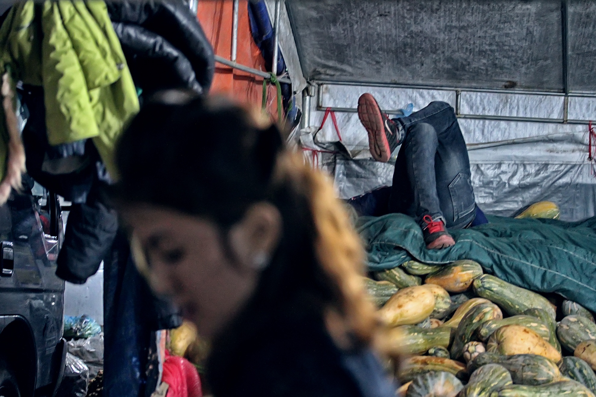 Nhiều tiểu thương không có ô tô, chỉ dùng xe máy nên ít có thời gian nghỉ ngơi, bán xong vội vàng đi tiếp để có những chuyến hàng mới cho kịp giờ tan chợ. |