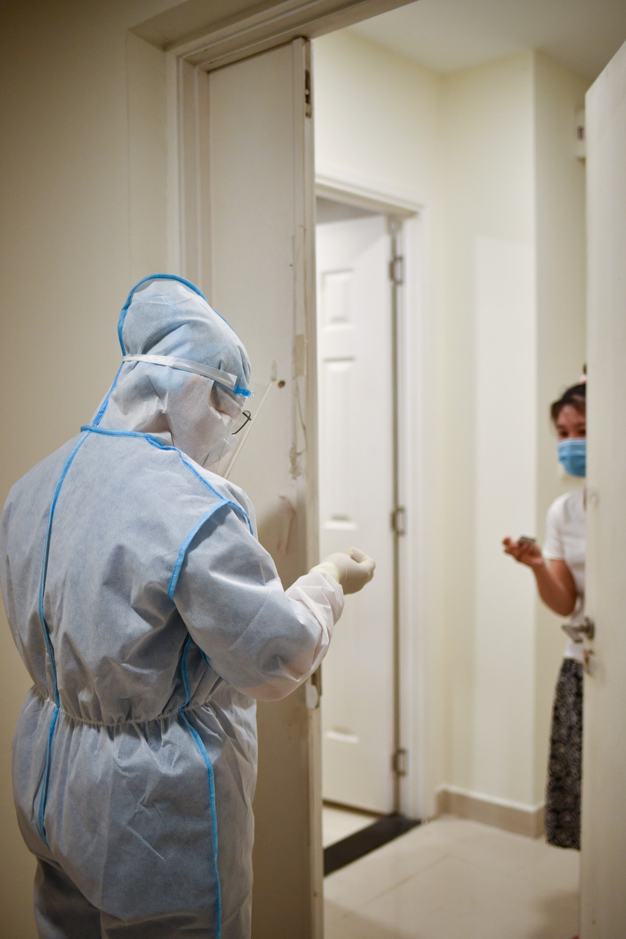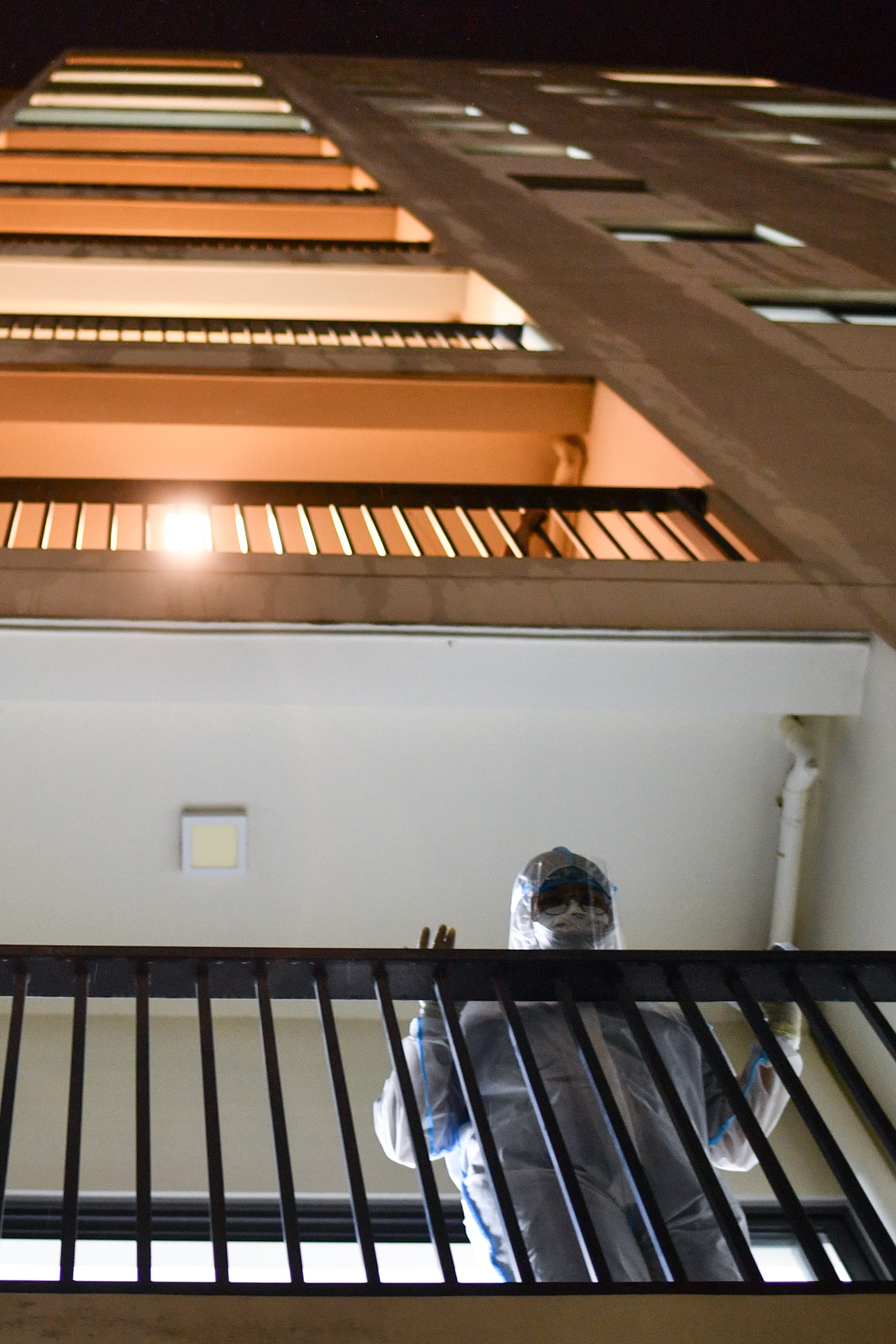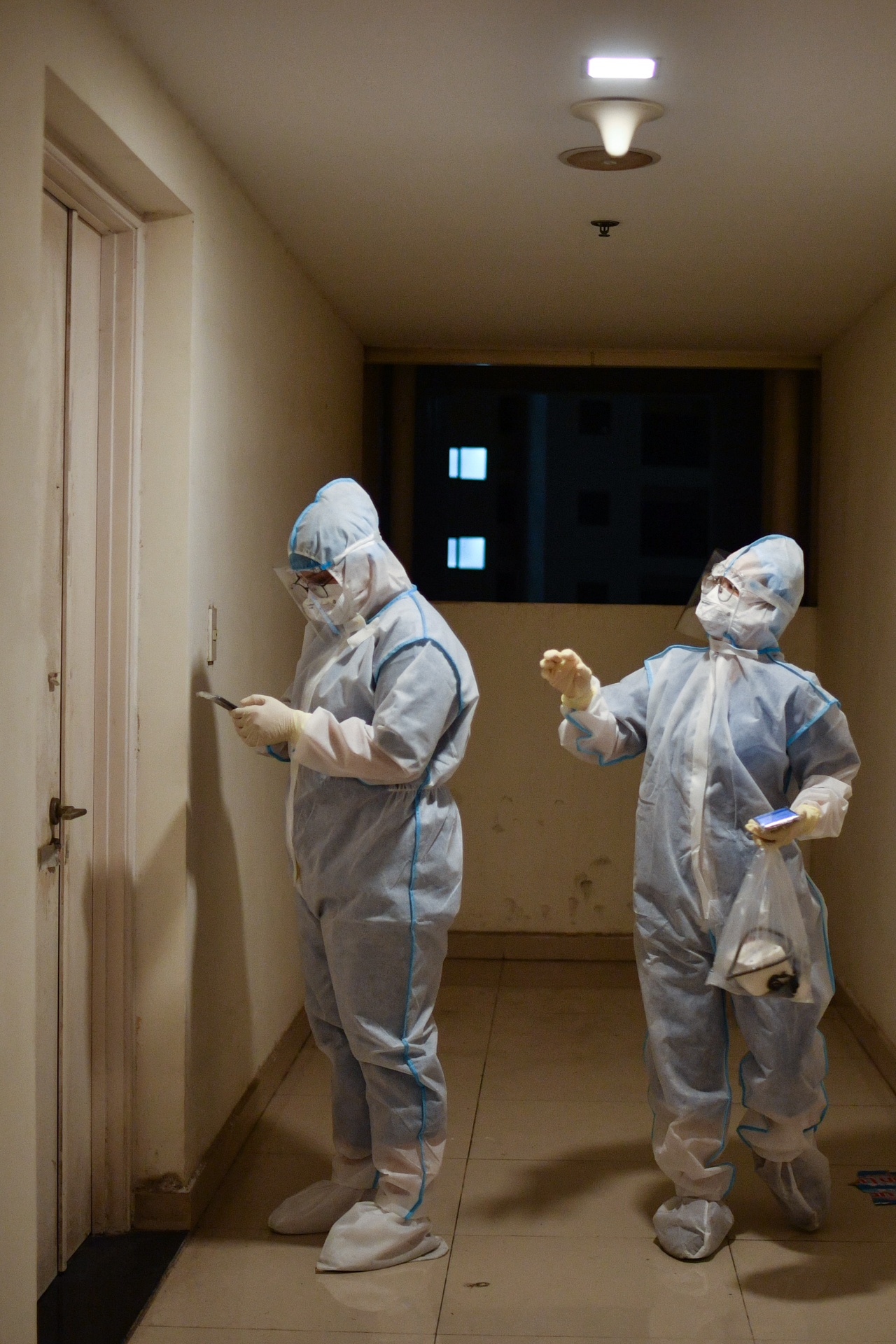 | Quản lý một toà nhà hàng nghìn bệnh nhân không phải dễ dàng. Do đó công việc của chúng tôi được chia làm nhiều khâu. Các F0 ở tại tầng 3 đến tầng 24, đội ngũ y tế, dân quân sẽ ở tầng 1, tầng 2 là "tầng đệm". Chúng tôi luân phiên trực tại tầng đệm để theo dõi sức khỏe, thăm khám F0 mỗi khi họ có yêu cầu. |