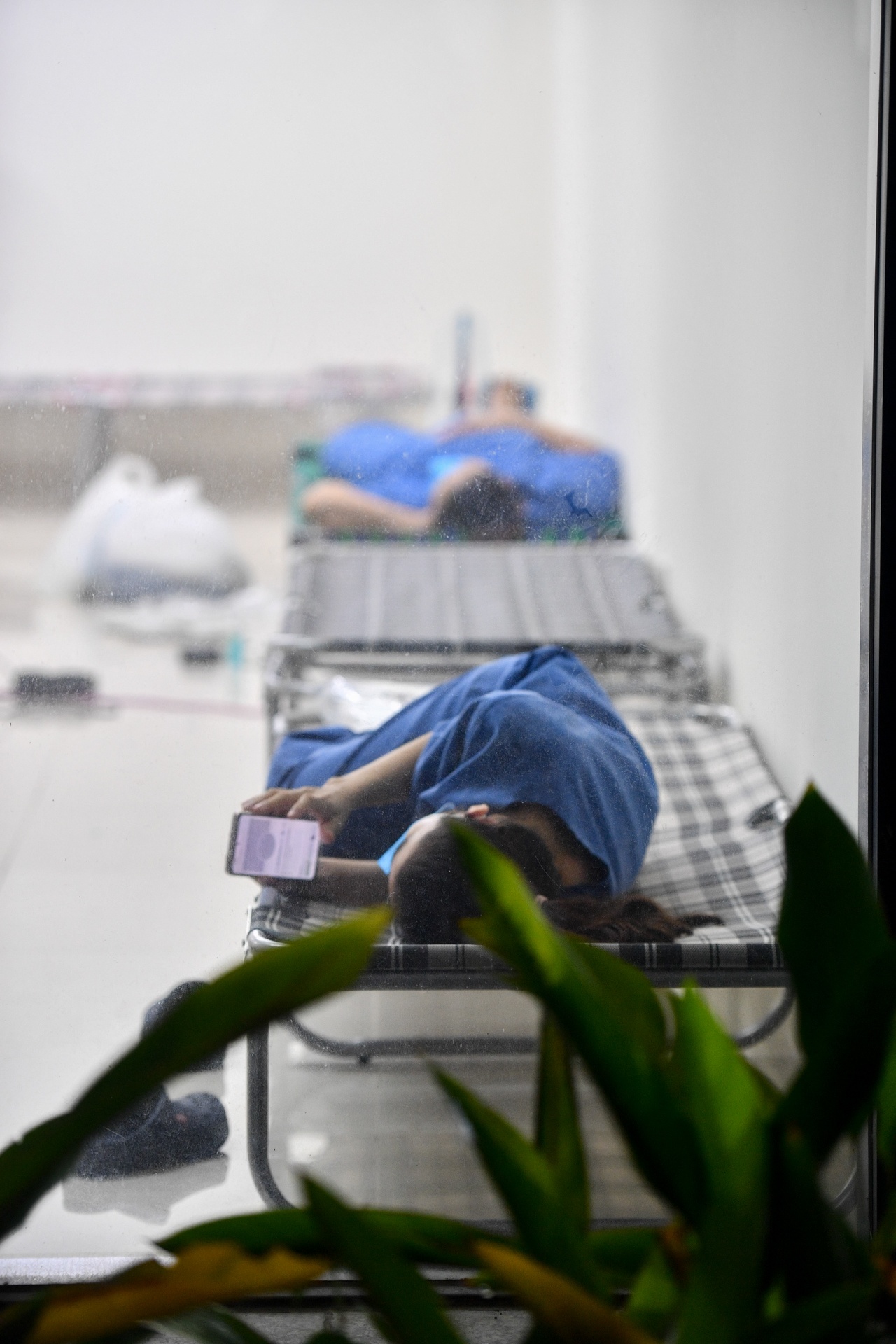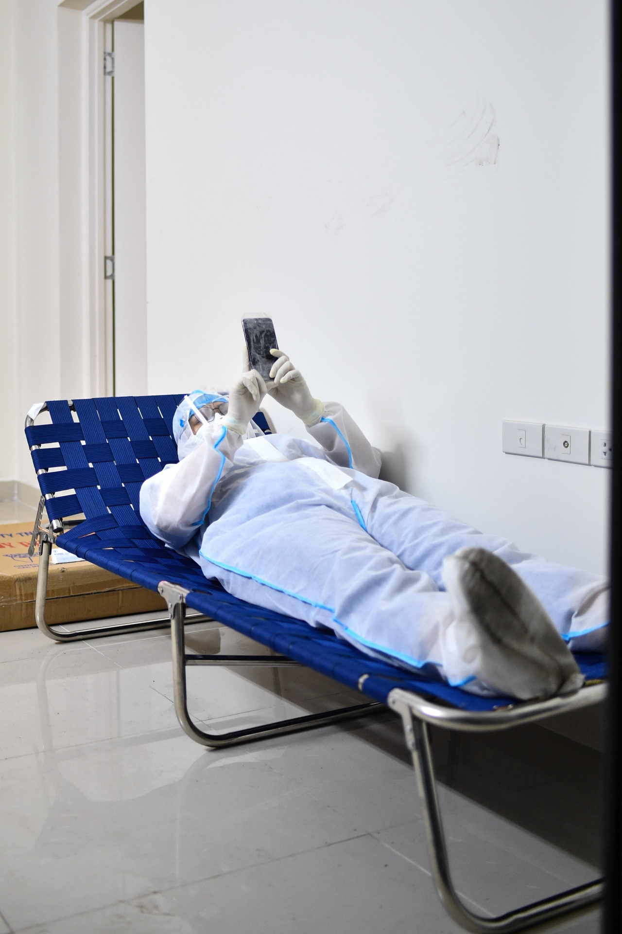 | Gần 0h, ca trực kết thúc, chúng tôi tranh thủ nghỉ ngơi trên những chiếc giường dã chiến đặt ngay tại phòng trực. Những ngày qua, chúng tôi và các đồng nghiệp luôn khẩn trương làm việc để đảm bảo việc cách ly, điều trị cho hàng nghìn bệnh nhân. |
