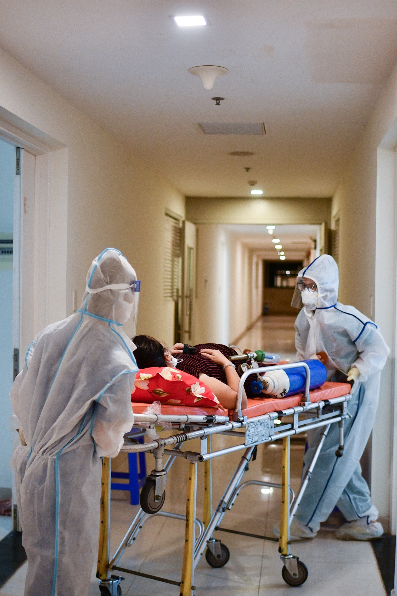| Hiện tại, nhiều bệnh viện điều trị Covid-19 quá tải khiến việc chuyển bệnh nhân diễn ra khá lâu. Chúng tôi phải liên hệ với nhiều bệnh viện khác nhau để xin chuyển bệnh sớm nhất có thể. Trong lúc chờ đợi, chúng tôi thường xuyên hỏi thăm và động viên bệnh nhân. |