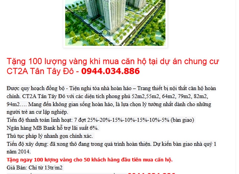 Chiêu bán nhà tặng vàng cho người mua nhà được một số công ty bất động sản áp dụng thời gian gần đây đang tỏ ra khá hiệu quả. Ngoài dự án Tân Tây Đô vừa mở bán những ngày vừa qua, một số dự án khác như chung cư Westa ở Hà Đông, Imperia An Phú… cũng đã dùng chiêu thức này. Tuy nhiên, theo anh Hùng, nhân viên bán hàng một dự án căn hộ tại Hà Đông, thực chất, mối quan tâm chính của khách hàng vẫn là giá cả, vị trí, tiến độ dự án cũng như diện tích căn hộ. “Việc tặng vàng đương nhiên sẽ khiến khách hào hứng hơn khi quyết định mua, nhưng nếu như căn hộ không đáp ứng các tiêu chí khách hàng đặt ra, thì cũng không dễ bán”, anh Hùng cho biết.