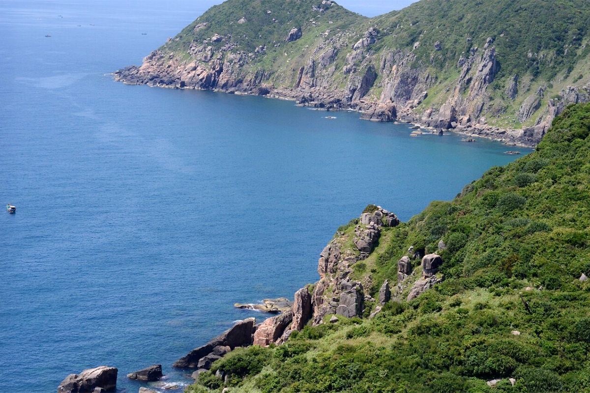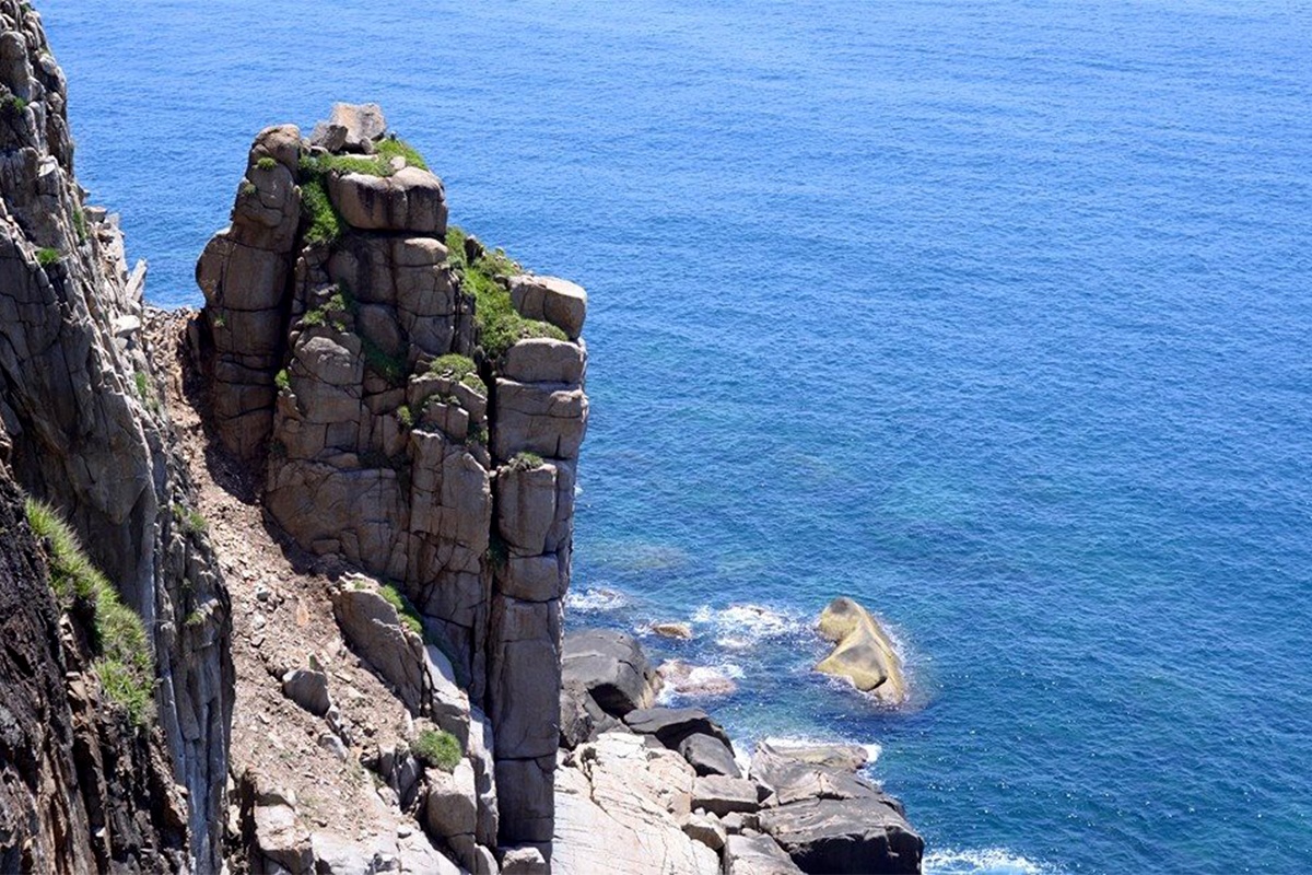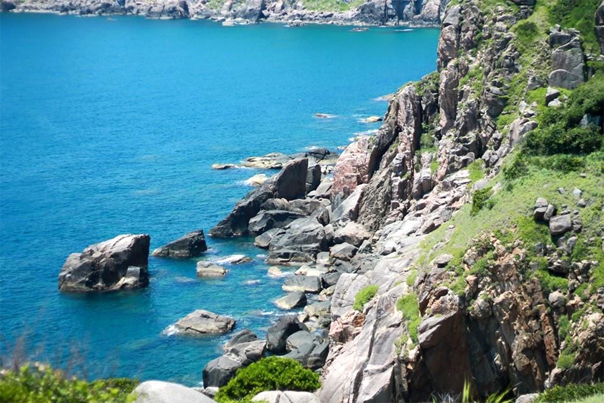 Những ghềnh đá lớn, nhỏ hài hòa với sắc xanh của biển, trời xanh thẳm, và cả thảm thực vật tươi tốt.