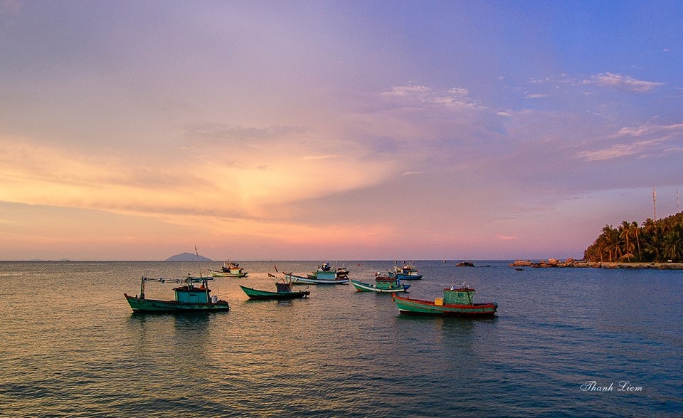 Hoàng hôn buông xuống khung cũng là lúc những con tàu ra khơi. |