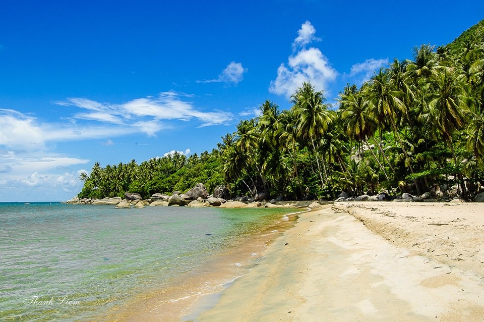 Đảo được bao quanh bởi những rặng dừa ngút ngàn, chạy dọc theo bờ biển mang một dáng vẻ hoang sơ, chưa có dấu vết của sự khai phá. |