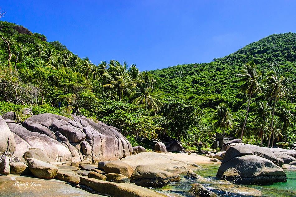 Bãi Đá Chài với những ghềnh đá lớn, làn nước trong xanh khiến khung cảnh trông thật hoang sơ, hùng vĩ và thơ mộng.