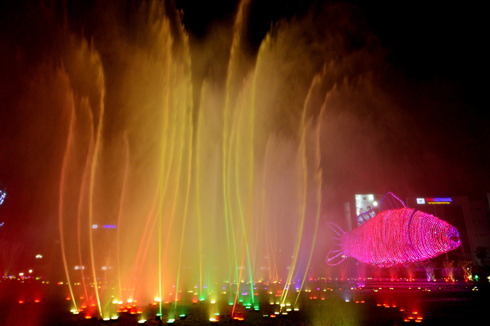 Gần 100 nghệ nhân tài hoa đã thi công liên tục từ ngày 1/8 đến ngày 18/8/2014 để hoàn thiện. Điểm độc đáo là hệ thống đèn led này được lập trình thông minh theo từng bản nhạc và phát sáng tương ứng với các giai điệu vui tươi, rộn ràng không khí lễ hội. Cùng kết hợp với nhạc nước, hệ thống ánh sáng của đèn lồng cá chép tạo nên những hiệu ứng ánh sáng đẹp mắt. |