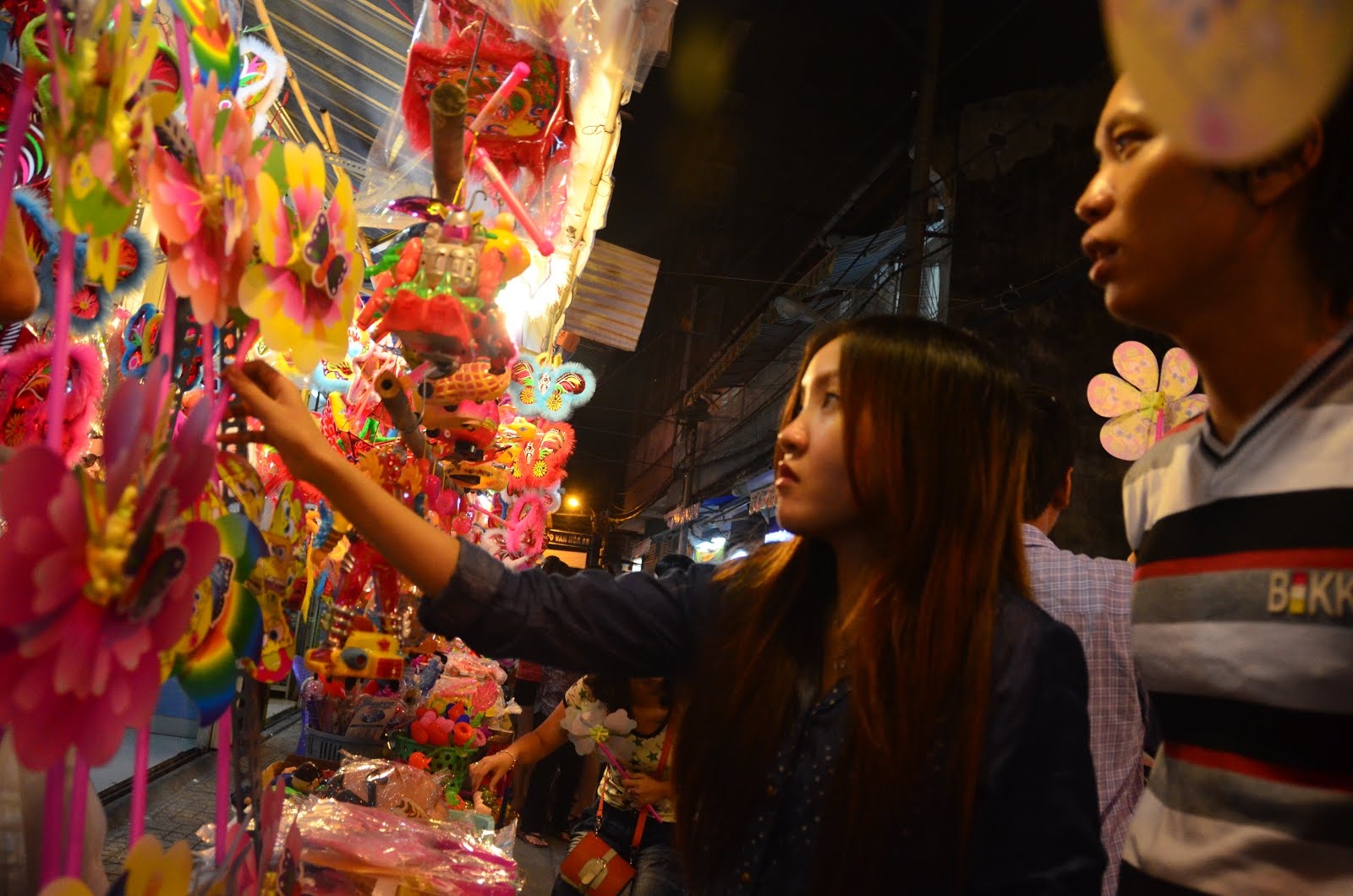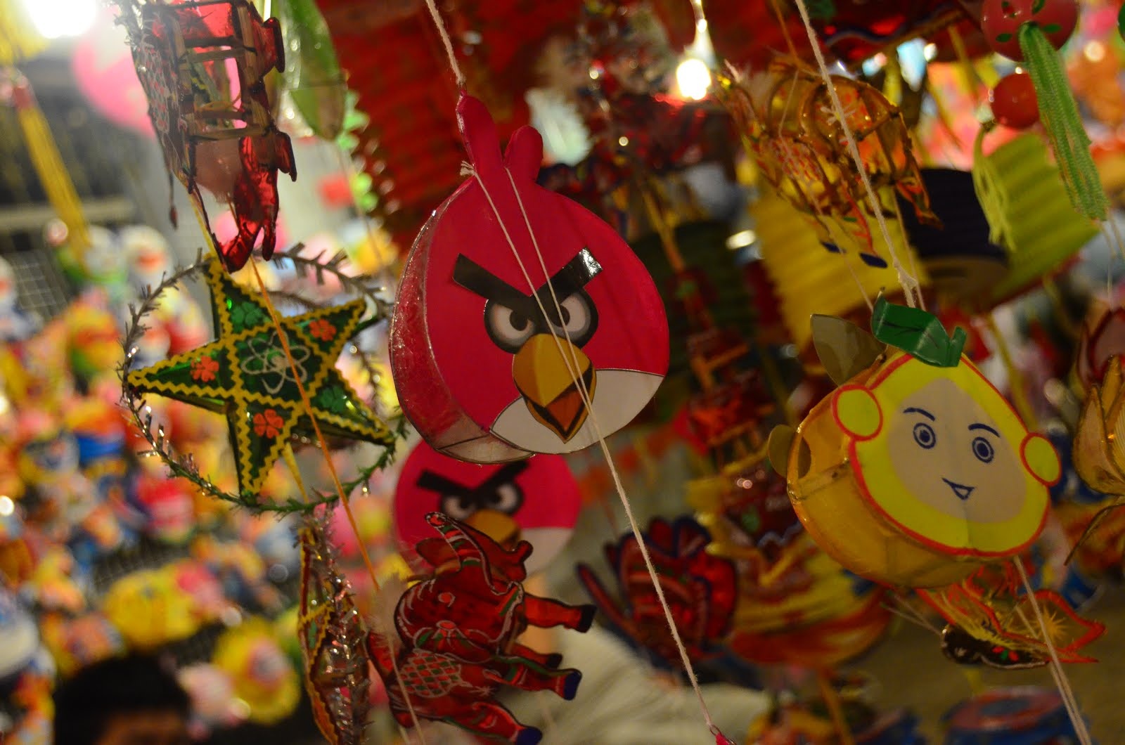 | Từ các mô hình trò chơi Angry Birds, phim hoạt hình, ca sĩ Psy của Gangnam Style xuất hiện ngập tràn trên đoạn phố này. Theo nhiều chủ hàng, phần lớn trong số đó là đèn lồng Việt Nam làm, bán chạy. |