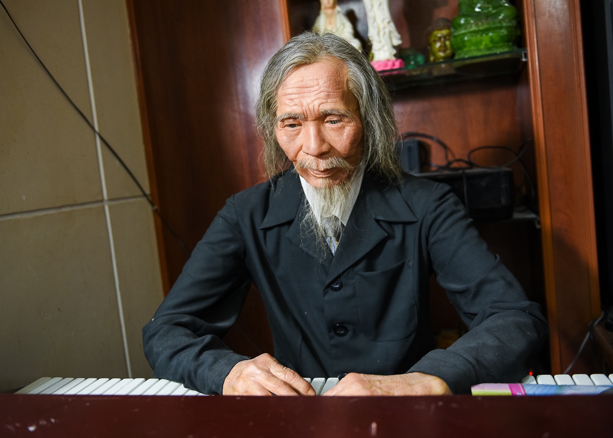 Vợ chồng nhà điêu khắc chưa hài lòng với bức chân dung của nhạc sĩ Văn Cao. Họ thử nghiệm lần đầu nên có nhiều lỗi kỹ thuật. |