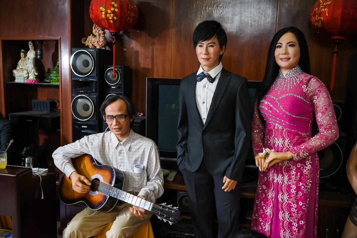 Chúng tôi ghé thăm công ty Tượng sáp Việt ở huyện Nhà Bè, TP HCM của nhà điêu khắc Nguyễn Văn Đông vào chiều 20/11. Căn nhà của anh ngổn ngang với nhiều bức tượng đang gia công. Cặp vợ chồng nghệ nhân cho biết, họ sẽ sớm hoàn tất dự án đúc 100 tượng sáp của những nghệ sĩ có nhiều đóng góp cho ngành nghệ thuật. |