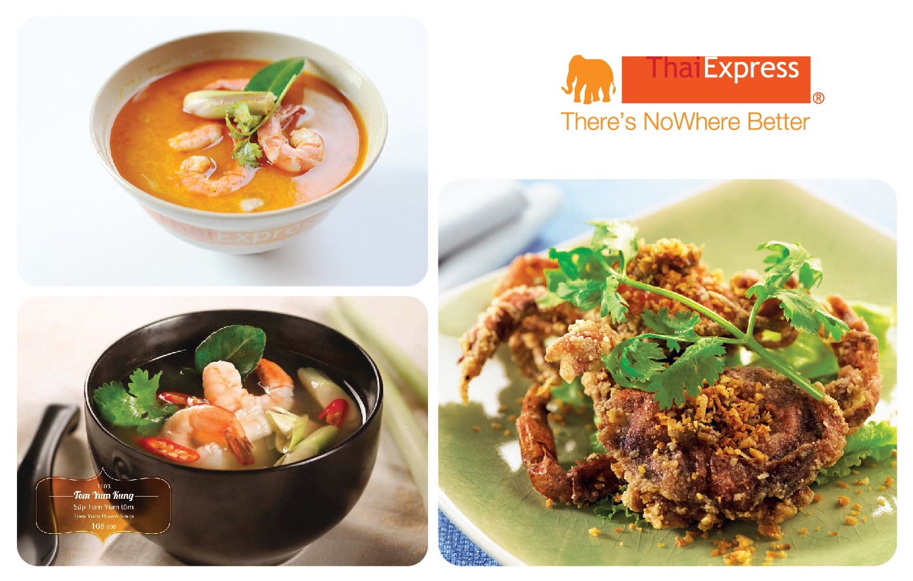 Chọn lọc và kế thừa những tinh hoa của ẩm thực đường phố Bangkok, ThaiExpress đến cho thực khách một thực đơn phong phú tới hơn 200 món ăn truyền thống: gỏi miến hải sản chua cay, các loại súp tom yum, các loại cà ri Thái, chả tôm, cua lột chiên giòn sốt ngọt, thịt gà xào hạt điều… của người dân xứ sở chùa vàng.