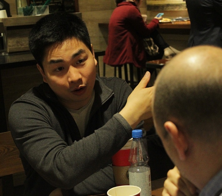 | Nguyễn Thành Nhân trò chuyện với một số bạn trẻ tại Hà Nội ngày 30/1. Ảnh: Ngọc Tân. |
