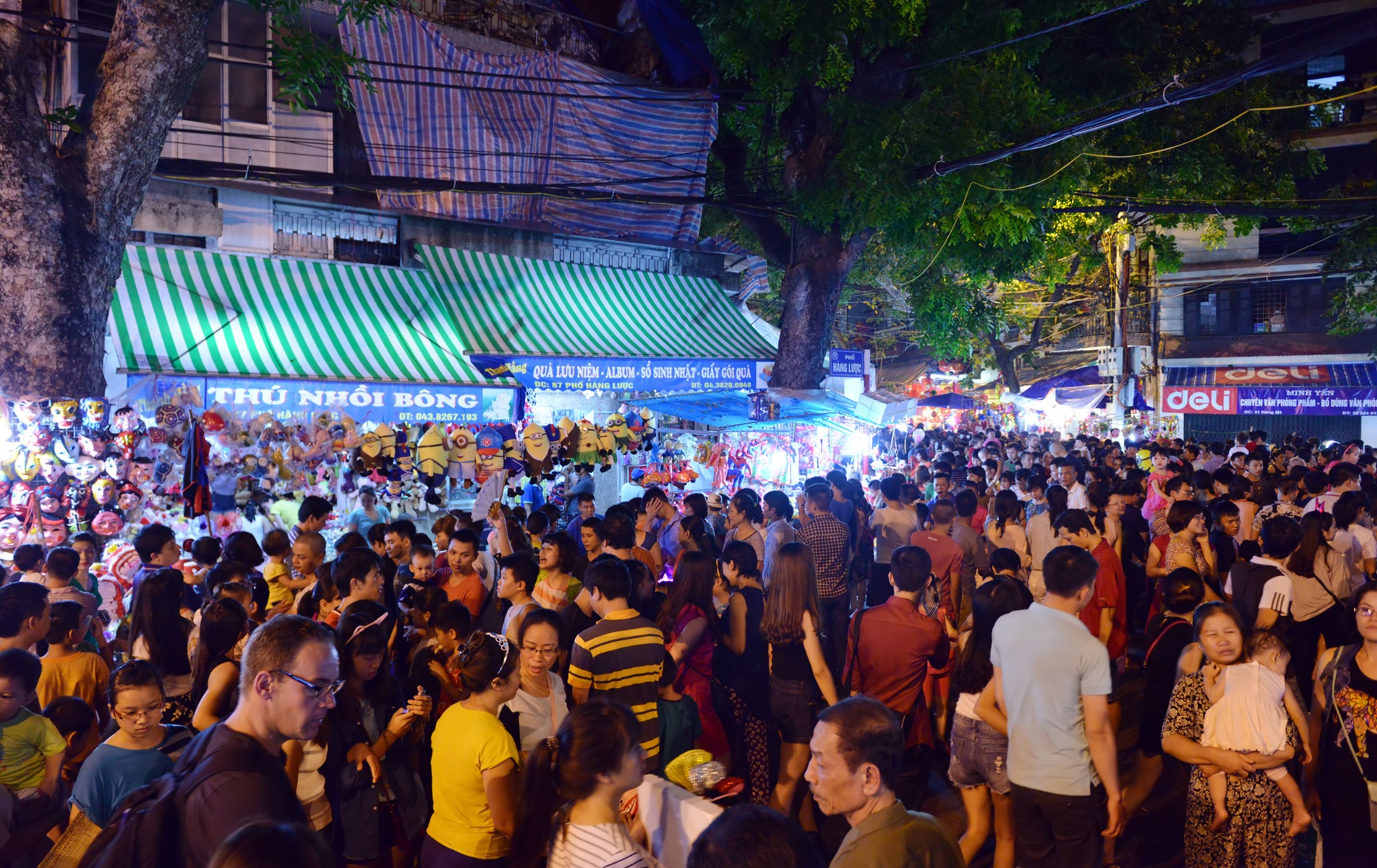 Hàng chục nghìn người dân thủ đô đổ về chợ bán đồ chơi trung thu tại các tuyến phố Hàng Mã, Hàng Lược... khiến cho khu vực này như một "biển" người.