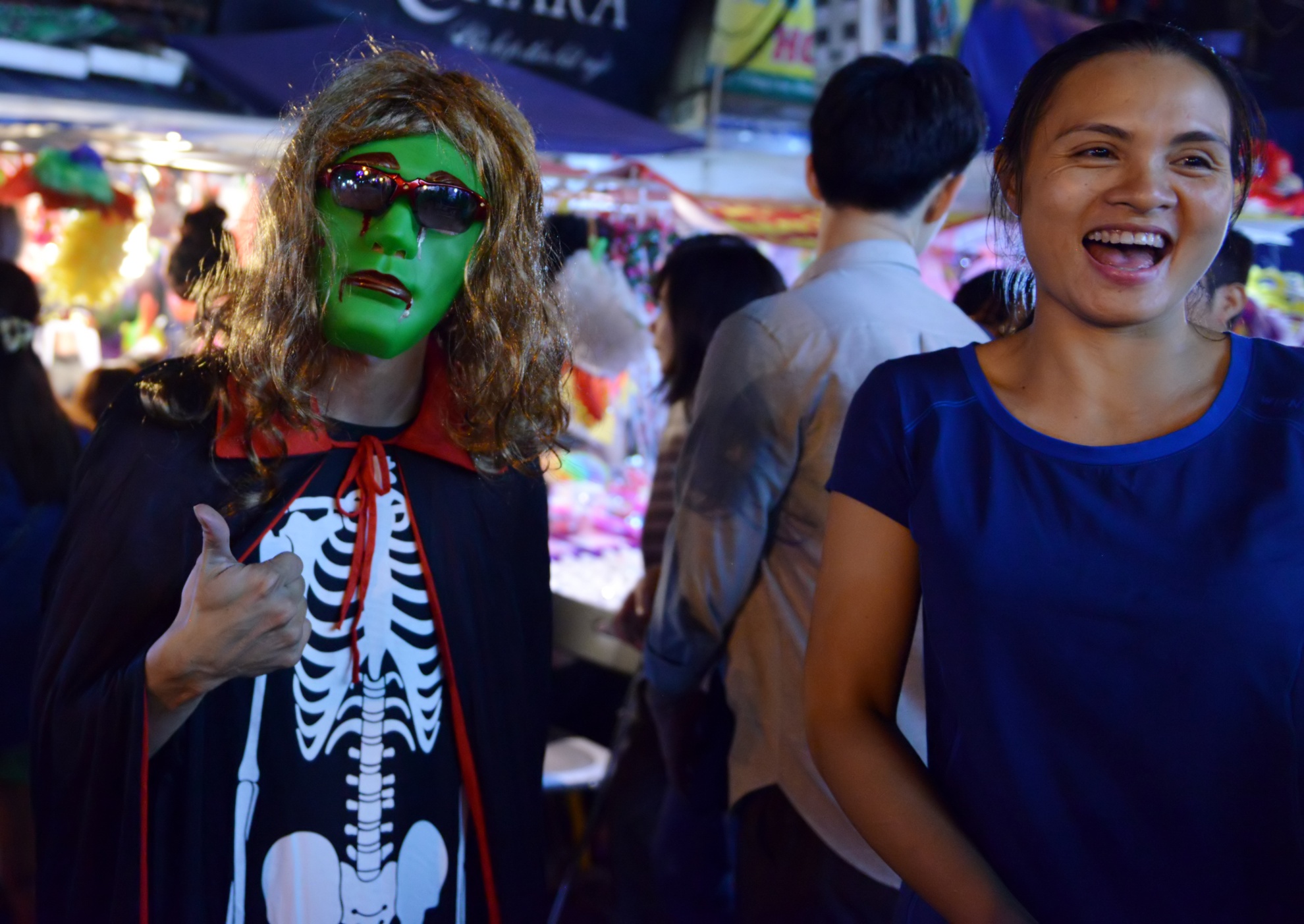 Nhân dịp này nhiều thanh niên được dịp vui đùa, đi doạ mọi người. Một số du khách không khỏi giật mình khi đang lúi húi chọn đồ chơi, ngoảnh ra thấy một gương mặt như ma quỷ lượn lờ ngang qua.