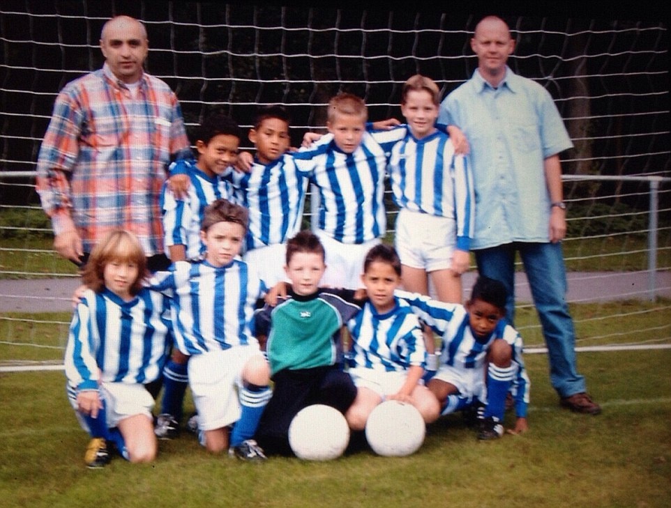 | Depay (cậu bé hàng sau, bên trái) làm điệu chụp ảnh lưu niệm cùng đội bóng địa phương VV Moordrecht, trước khi chuyển sang khoác áo đội trẻ Sparta Rotterdam. |