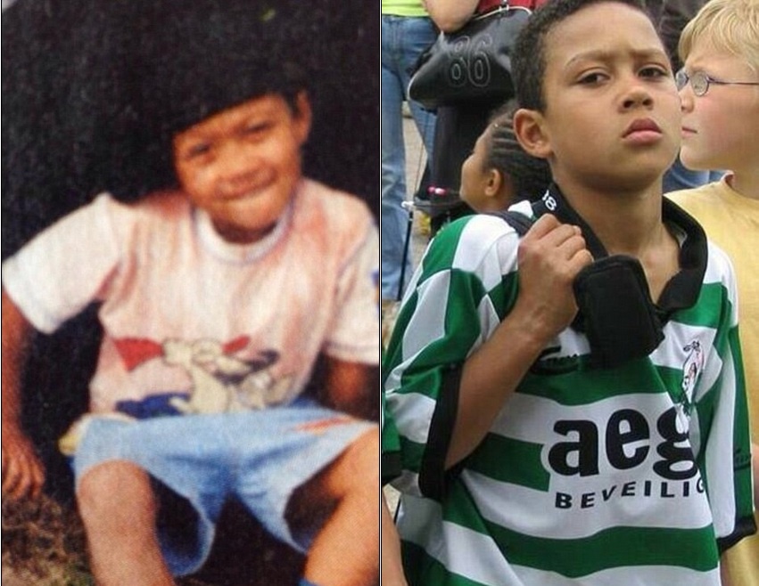| Hình ảnh Memphis Depay còn nhỏ (trái) và thời điểm anh gia nhập CLB Sparta Rotterdam (phải). Từ khi chuyển sang học viện của Sparta Rotterdam, tuyển thủ Hà Lan lấy tên áo là Memphis, thay vì Depay, với lý do anh không biết cha mình là ai. |