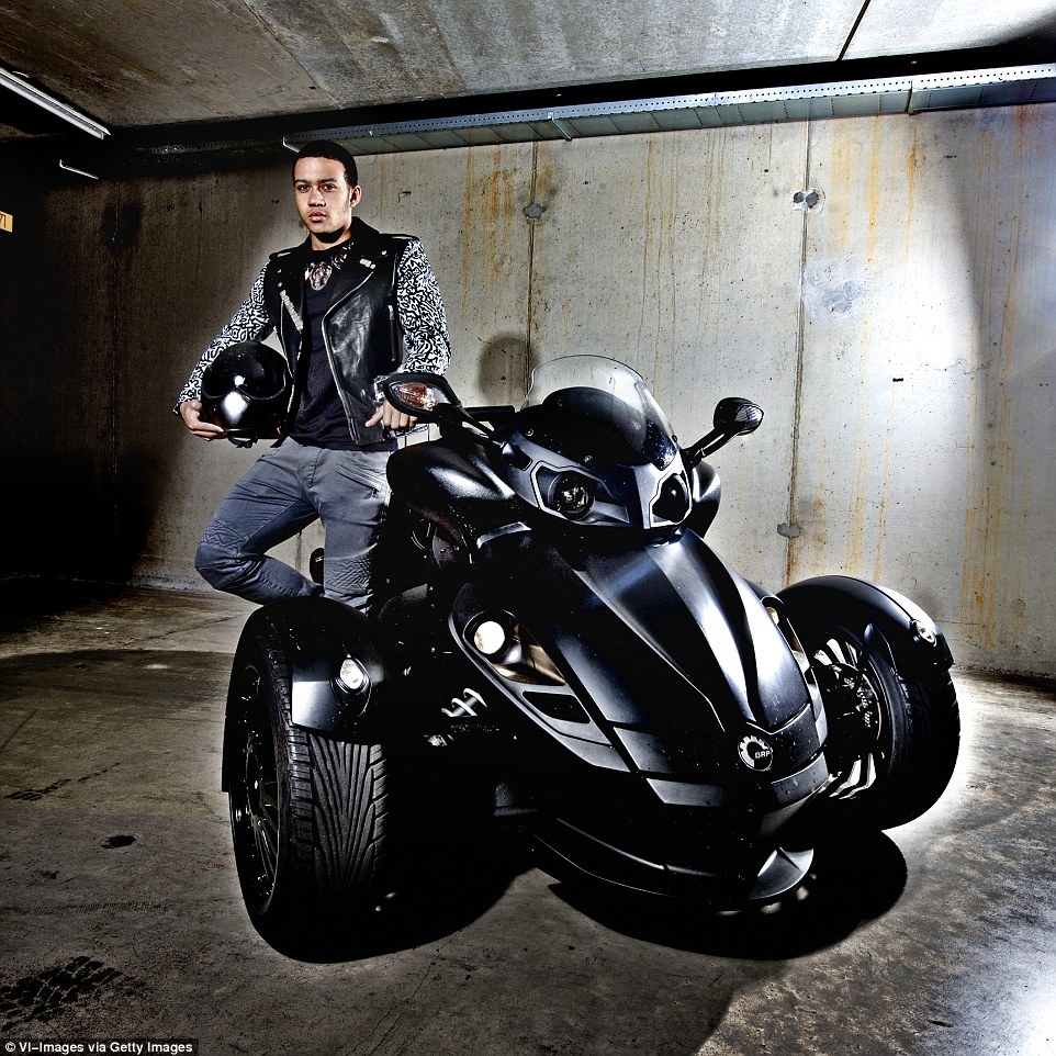 | Depay chụp ảnh bên chiếc xe ba bánh năm 2013, trước khi tên tuổi của anh được biết đến trên toàn châu Âu. |
