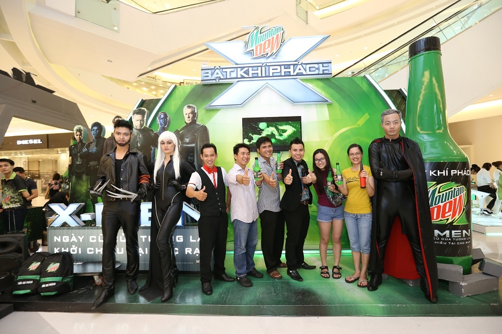 | Các dị nhân bất ngờ “bước ra từ màn ảnh” Storm, Magneto và Wolverine, cùng các Dew Dudes tạo nên một không khí náo nhiệt và sẵn sàng cùng bật tung khí phách. |