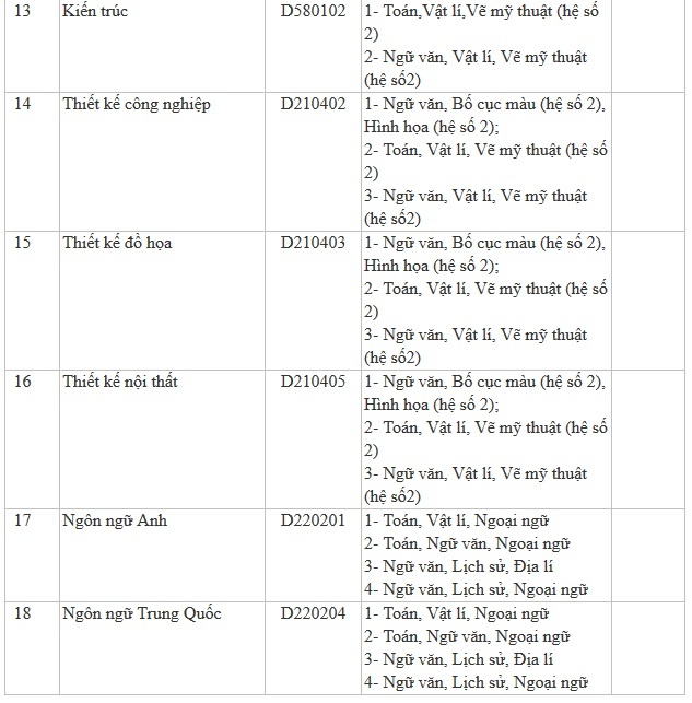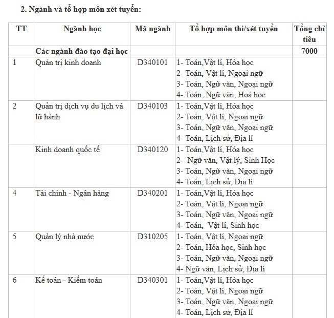 Ngành và tổ hợp môn xét tuyển đợt một như sau: