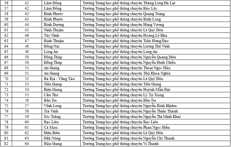 Danh sách 82 trường THPT chuyên, năng khiếu