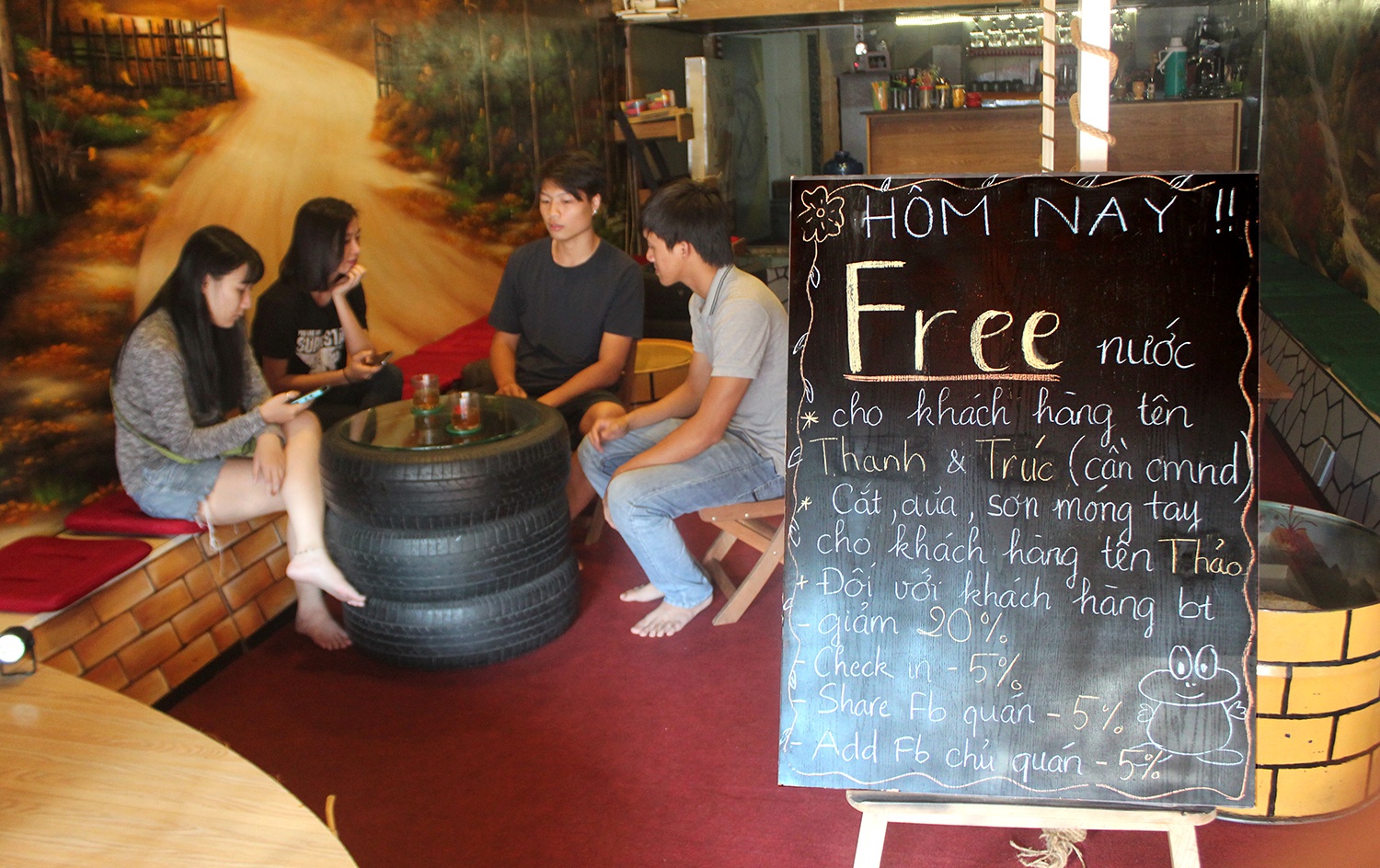 Cũng chọn cách khuyến mãi lạ để kéo khách, một quán cà phê trên đường Trần Huy Liệu, quận Phú Nhuận đang tổ chức chương trình khuyến mãi theo tên khách đến quán. Mỗi ngày, quán chọn ra 2 cái tên ngẫu nhiên để miễn phí nước uống. Ngoài ra, quán này còn chọn ngẫu nhiên tên khách hàng để chăm sóc móng tay, chân miễn phí theo ngày.