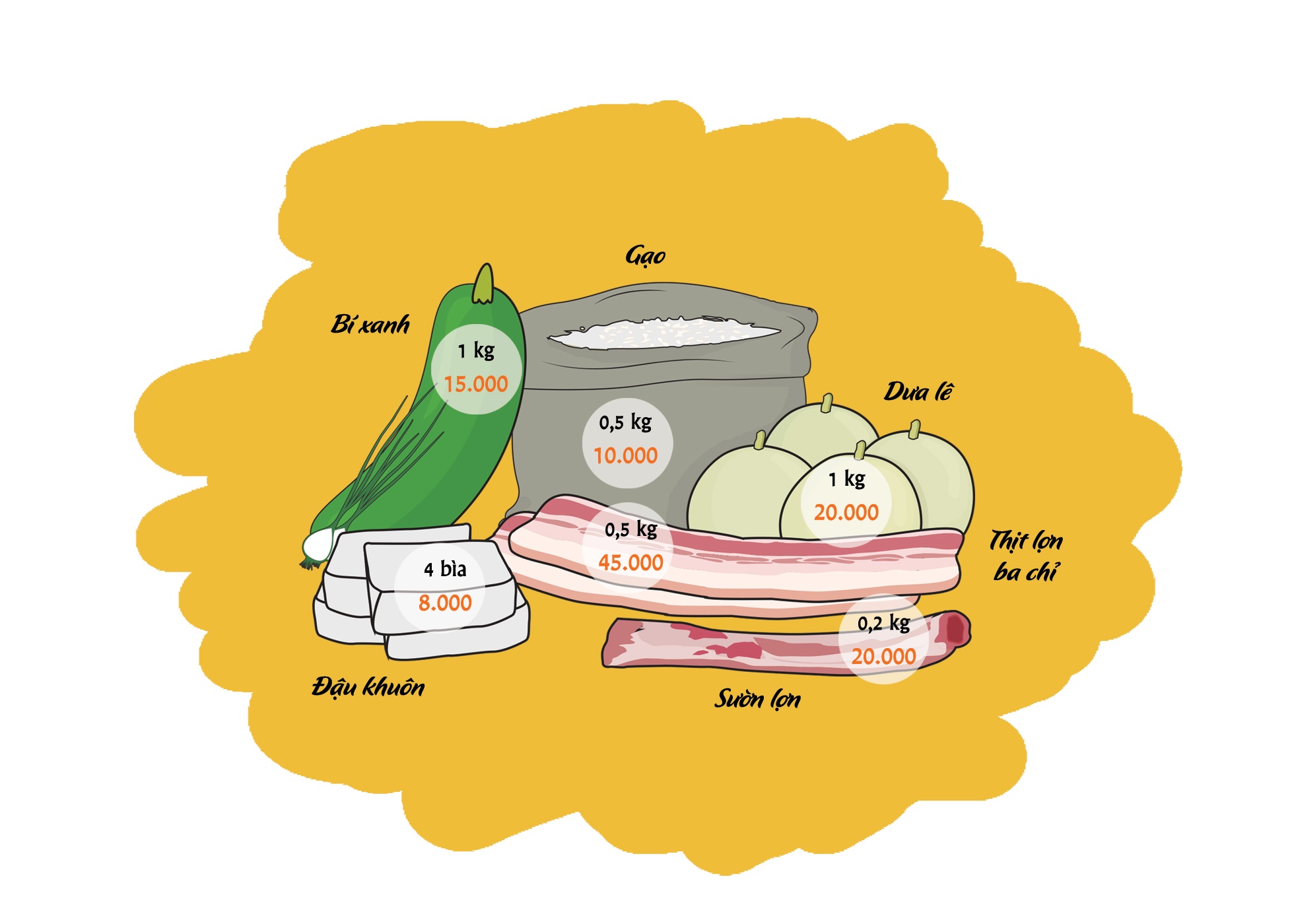 Bữa ăn này sẽ cung cấp đủ 4 nhóm chất quan trọng là: bột đường, chất béo, đạm, khoáng chất và vitamin. Giá của các món ăn đã được khảo sát trên thị trường.