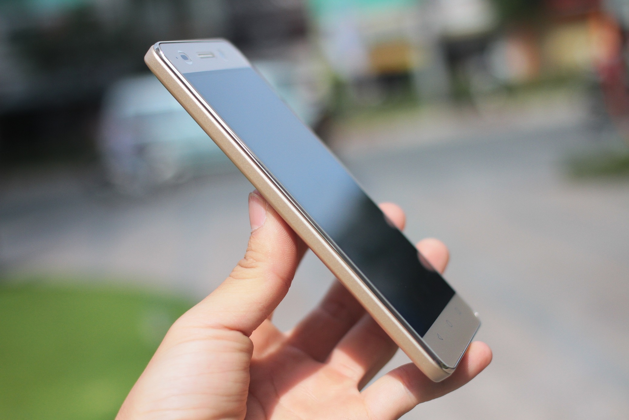 Thiết kế của máy khá đơn giản, ít chi tiết. Cảm giác cầm sản phẩm này cũng ấn tượng, máy đầm, ôm tay. Honor 4C mỏng 8,8 mm, nhìn từ bên trái, thiết bị không có nút bấm nào.