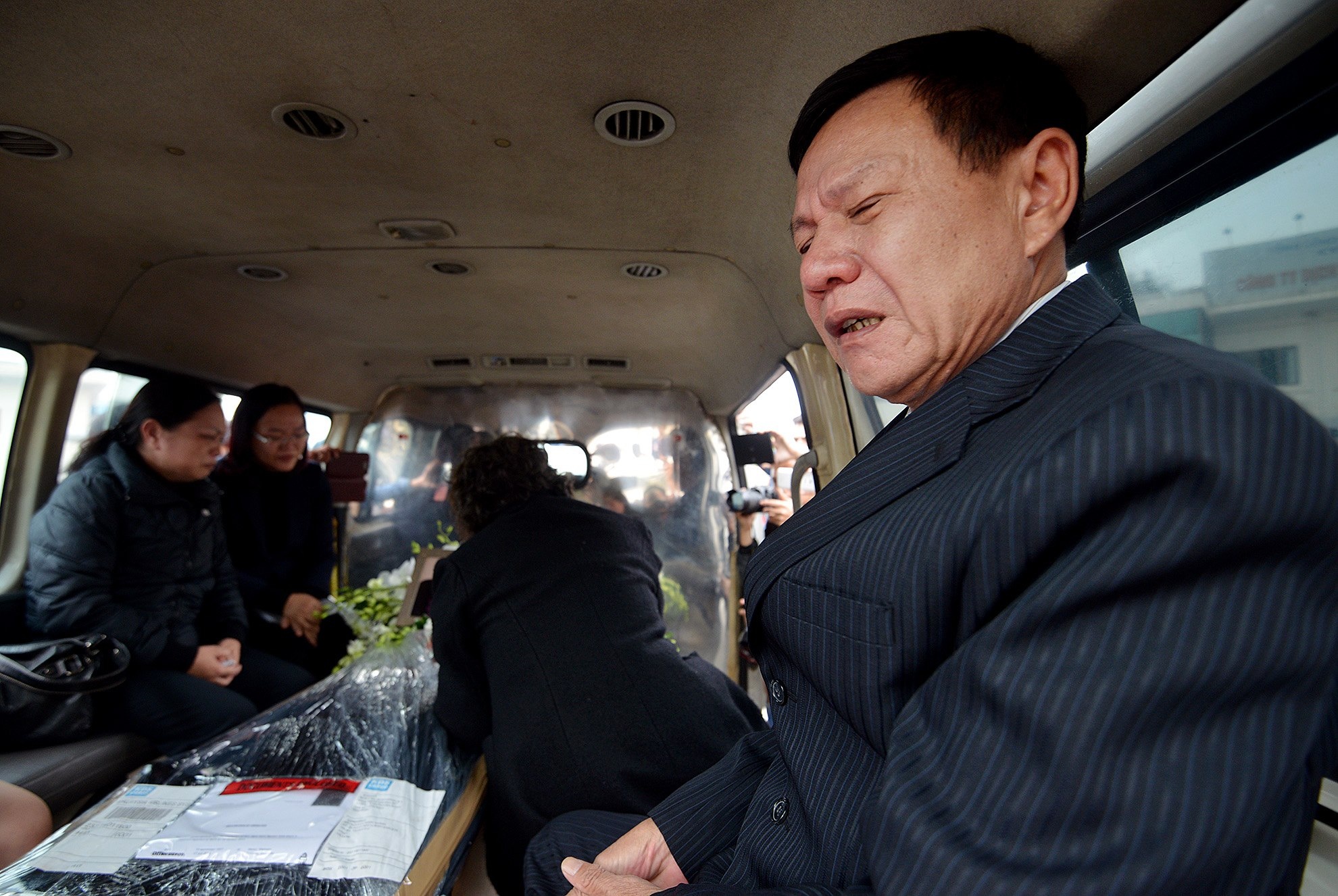 13h15, Chiếc xe chầm chậm tiến ra giữa sảnh sân ga, tiếng khóc như vỡ òa. Bà Phong bỗng khụy chân tụt lại. Cố gắng nén lại cảm xúc, bà cùng những người thân và ban tổ chức nhà tang lễ Phùng Hưng đưa thi thể chị Minh và các cháu lên xe.
