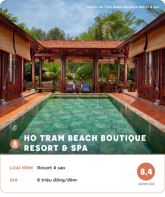 Điểm nổi bật: Resort kết hợp giữa không gian xanh, hài hòa với thiên nhiên và nhiều tiện ích giải trí hiện đại. Các phòng có view sân vườn, hồ bơi hoặc biển. Ví trí tiện di chuyển đến khu rừng nhiệt đới Phước Bửu, suối nước nóng Bình Châu...