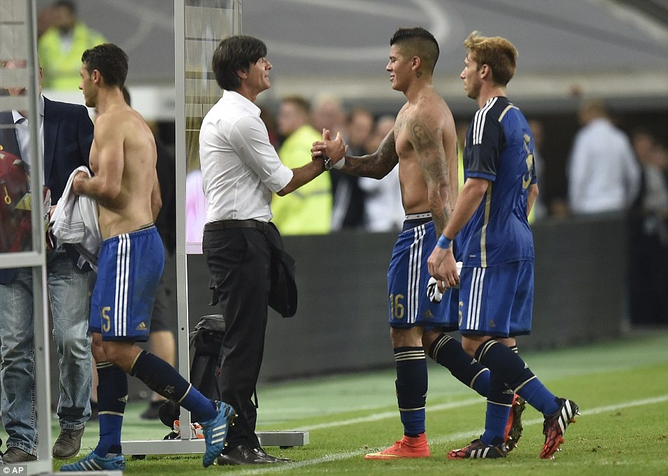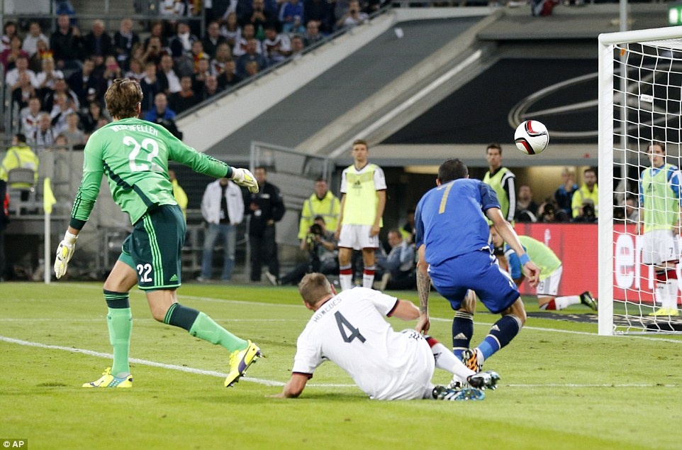 | Không còn gì để mất, đội quân của HLV Joachim Loew tràn lên tấn công dữ dội và họ có bàn thu hẹp khoảng cách xuống 1-4 ở phút 52. Người thắp lên hy vọng cho tuyển Đức là Schuerrle. |