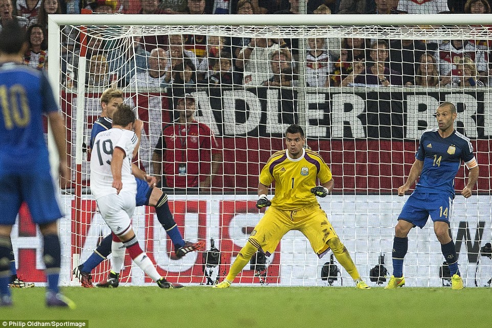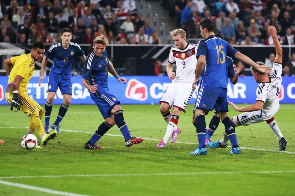 Đội hình thi đấu: Đức: Neuer (Weidenfeller 46’), Durm, Howedes (Rudiger 77), Ginter, Grosskreutz, Kroos (Rudy 71’), Kramer, Schurrle (Mueller 57), Reus, Draxler (Podolski 33’), Gomez (Goetze 57’). Argentina: Romero (Andujar 79’), Rojo Federico Fernandez, Demichelis, Zabaleta (Campagnaro 77’), Mascherano, Biglia, Perez (Augusto Fernandez 46’), Di Maria (Alvarez 86’), Lamela (Gago 68’), Aguero (Gaitan 83’). |