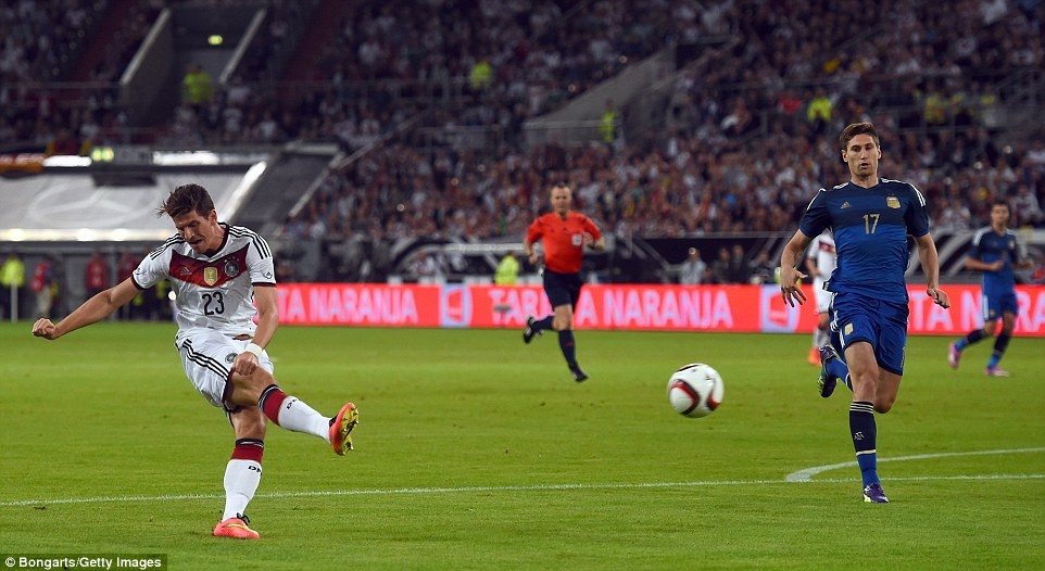 | Tất cả những gì mà tuyển Đức làm được trong khoảng thời gian còn lại là bàn thắng thu hẹp khoảng cách xuống 2-4 của Mario Goetze ở phút 78. Goetze chính là người hùng của tuyển Đức ở chung kết World Cup khi ghi bàn duy nhất đem lại vinh quang cho Die Mannschaft ở hiệp phụ thứ 2. |