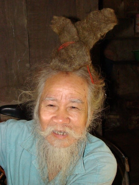 Thấy chúng tôi cứ trố mắt nhìn mái tóc kỳ lạ của lão, lão có vẻ đắc chí. Thế là lão lắc đi lắc lại mái tóc và nói: “Mấy năm gần đây nhiều người ở thị trấn này gọi mái tóc của tôi là mái “tóc rồng”, trước đây nó không giống lắm, thời gian gần đây tôi có để thêm chòm râu nữa nên cũng hơi giống”.