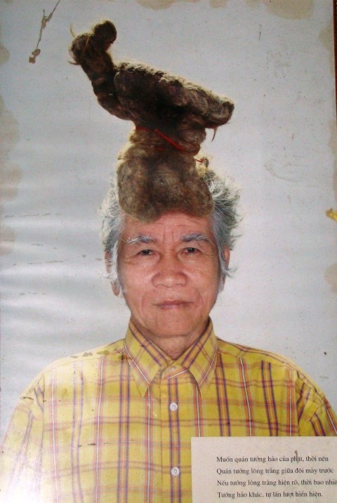Thấy việc để tóc dài rất có ích nên lão đã quyết tâm để, dù khi mái tóc dài ngang vai, trùm hết tai rất khó chịu, nhiều người trong gia đình khuyên lão nên đi cắt nhưng ông không cắt. Để lâu rồi thành quen, mái tóc lão cứ thế mà dài ra và bết lại, dính kết vào nhau tạo thành búi rồi cứng dần.