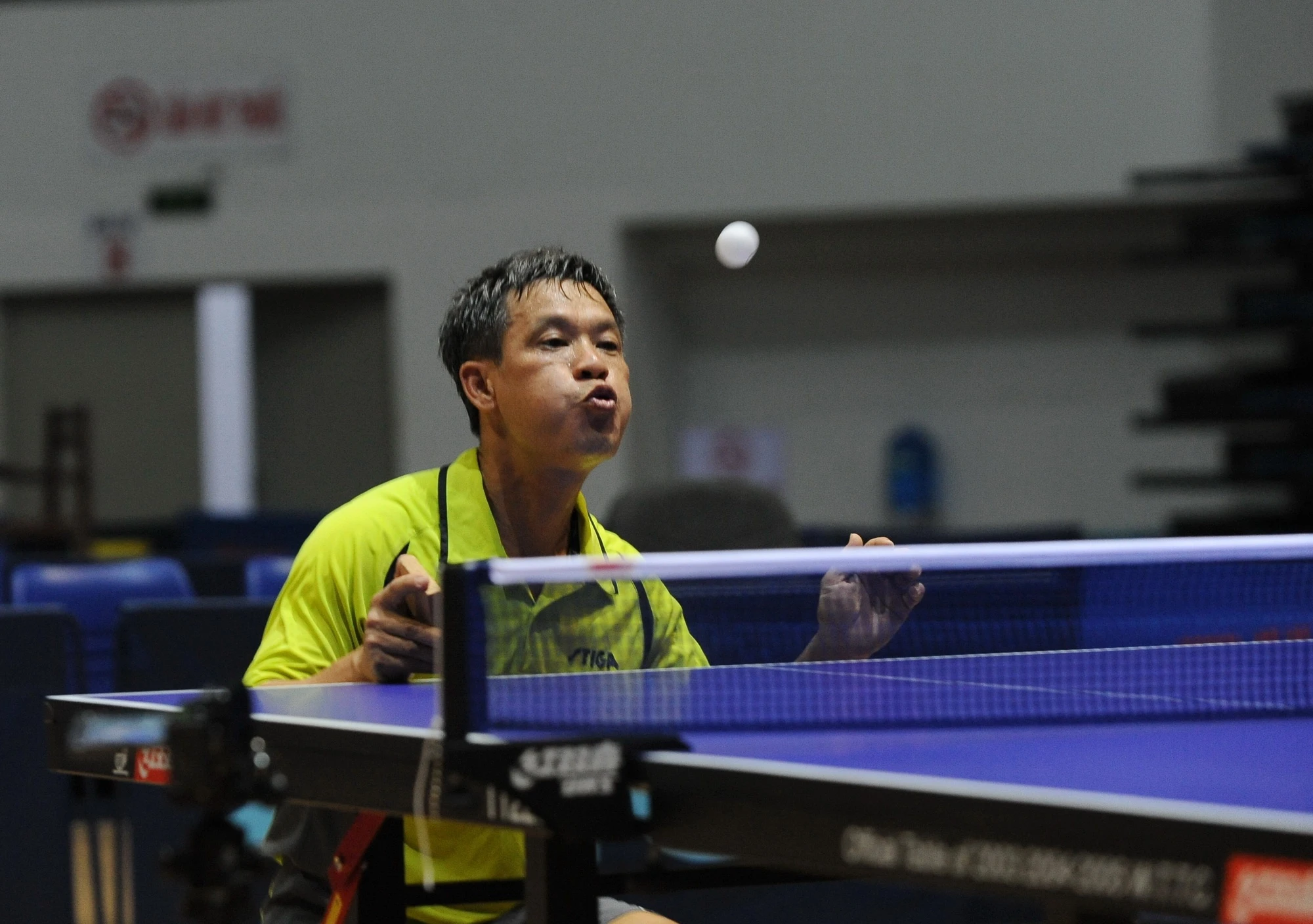 | Trong khi đó, VĐV kiêm HLV của đoàn bóng bàn Nha Trang Đoàn Kiến Quốc vẫn dùng cây vợt chuyên nghiệp để chống lại những pha phản công không giống bất cứ ai của anh Tuấn An. |