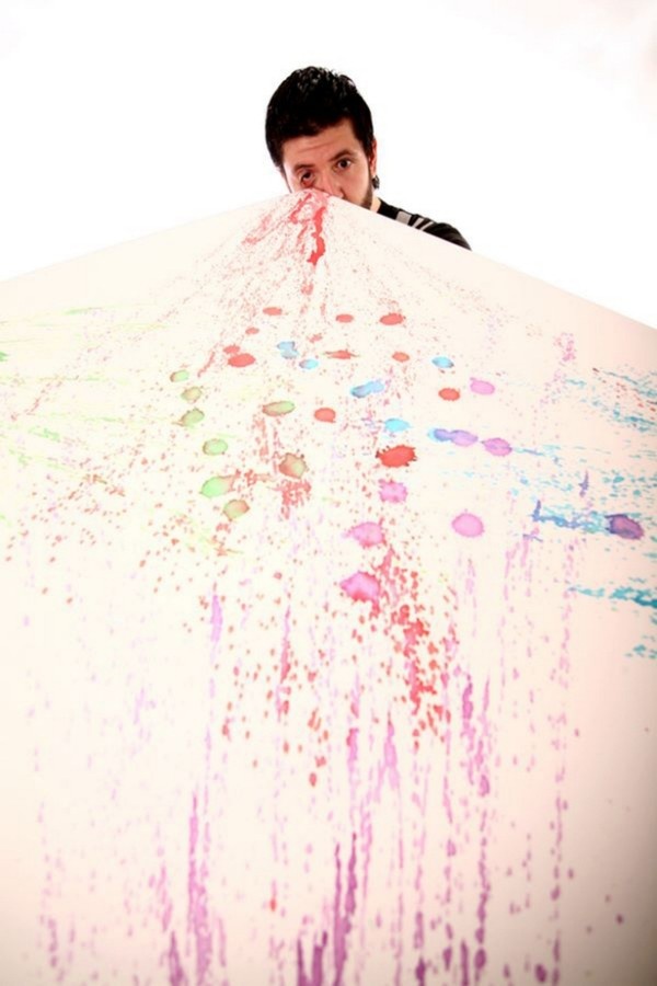 Leandro Granato, 27 tuổi là một họa sĩ trẻ người Argentina. Hiện anh sinh sống và làm việc tại thủ đô Buenos Aires của quốc gia này. Không giống như các nghệ sĩ khác dùng đôi bàn tay để cho ra đời các tác phẩm nghệ thuật, Granato lại sử dụng khả năng đặc biệt của đôi mắt để vẽ tranh. Anh Granato hít vào một lượng màu nước bằng đường mũi, sau đó phun ra các tia màu thông qua tuyến lệ.
