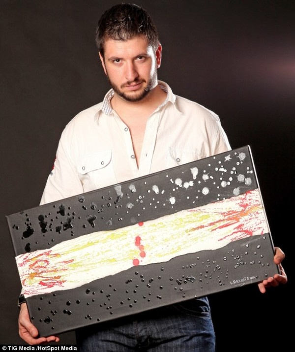 | Anh Granato tin rằng mình là người đầu tiên cũng như duy nhất trên thế giới vẽ tranh theo cách này. |