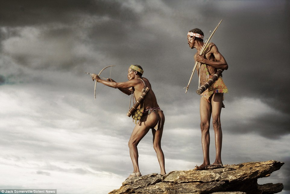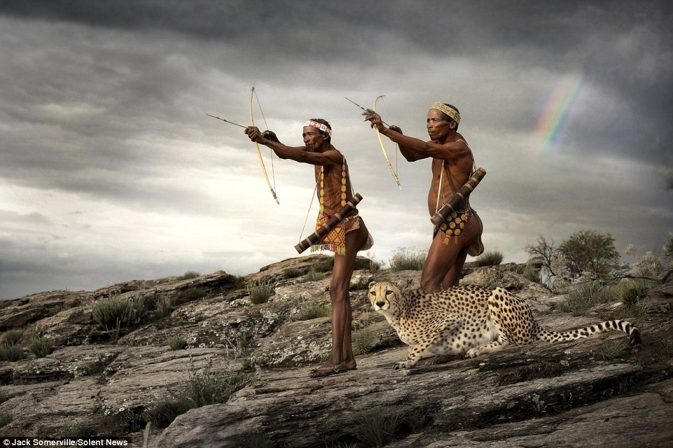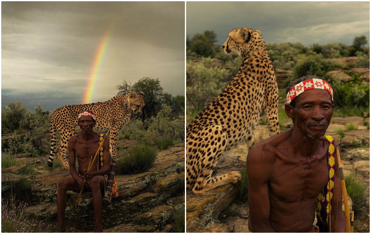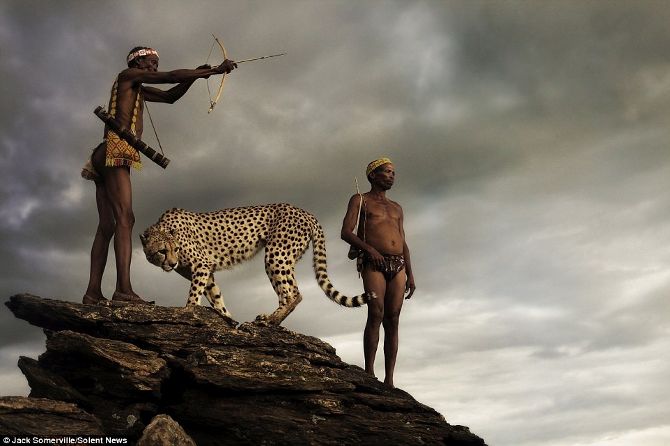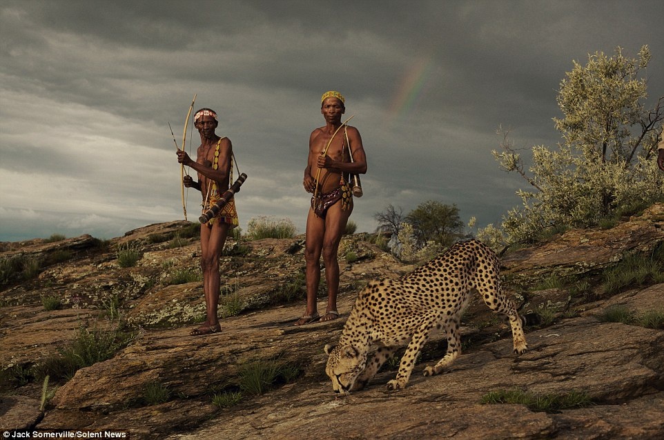 Hai thợ săn của bộ tộc San vẫn tiếp tục công việc khi con báo cheetah đang ở rất gần họ. Bộ tộc San hay còn gọi là “bushmen” hoặc “basarwa”. Khu vực sinh sống của họ là ở Botswana, Nambia, Angola, Zambia, Zimbabwe và Nam Phi.