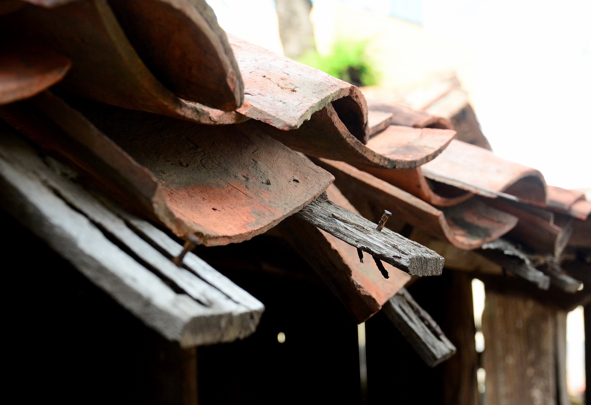 | Phần mái xung quanh đình những thanh song bật đinh, mục nát, nhiều lớp ngói âm dương vỡ, nứt và rơi rụng dần. |